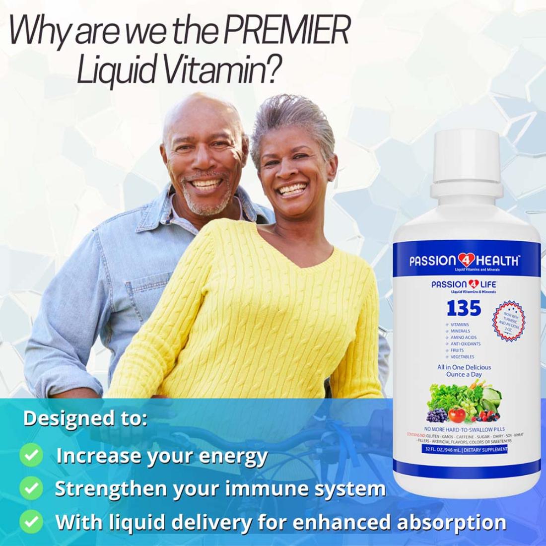 The delicious liquid alternative to hard-to-swallow vitamin pills for the whole family. Designed to dramatically strengthen the immune system to help fight off illness, provide natural sustained energy, stamina, and focus.