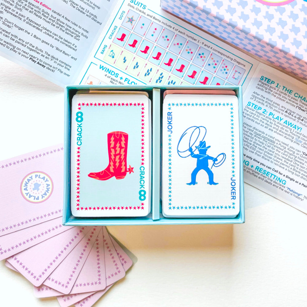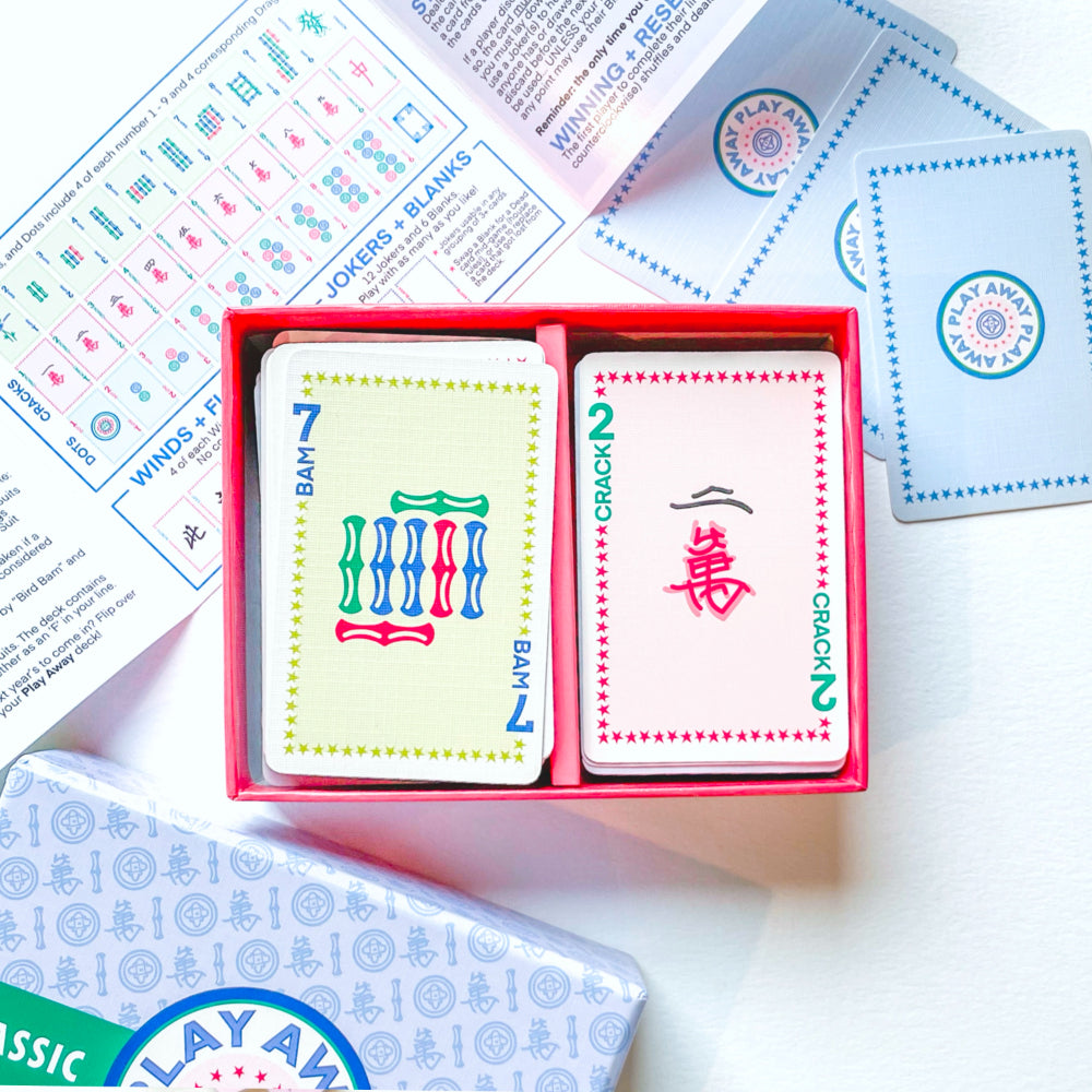 Play Mahjong anywhere without the bulky tiles and racks. With Play Away Mahjong Cards, simply shuffle and deal, then play the timeless game as usual! Grab a set to take with you when you travel, or to give as a gift to the Mahjong lover in your life.
