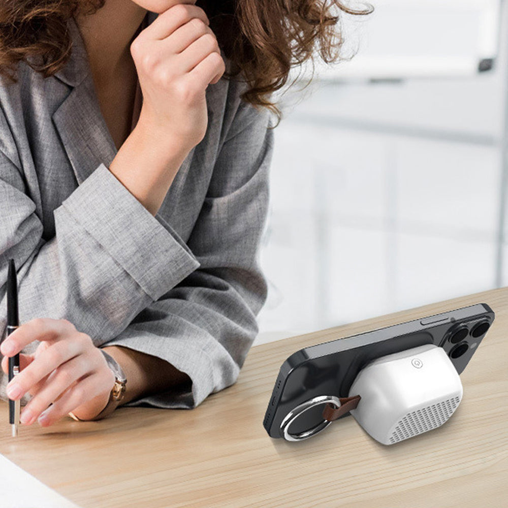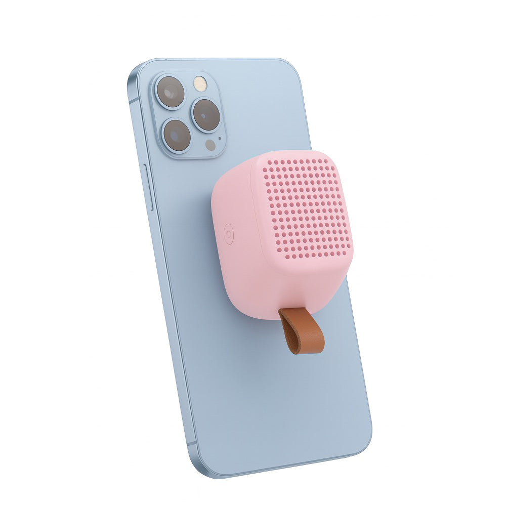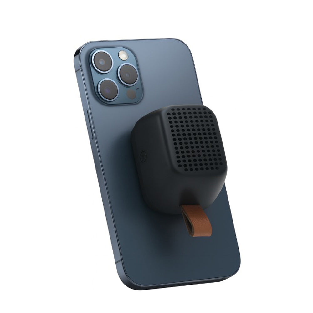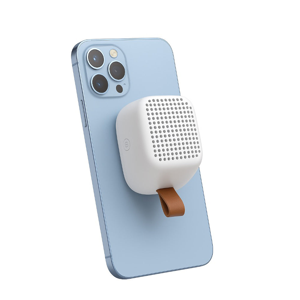 Take your music anywhere with this snap-on, magnetic wireless speaker that easily attaches to the back of your phone or phone case, or any metal surface in your bathroom, gym, kitchen, and more. Compact yet powerful, it delivers rich sound while doubling as a phone stand for hands-free calls, videos, or FaceTime. With a water-resistant design, it’s just as ready for the beach or pool as it is for a hike, party, or casual hangout.