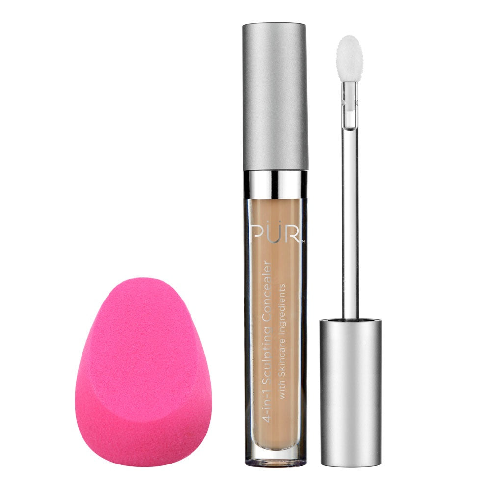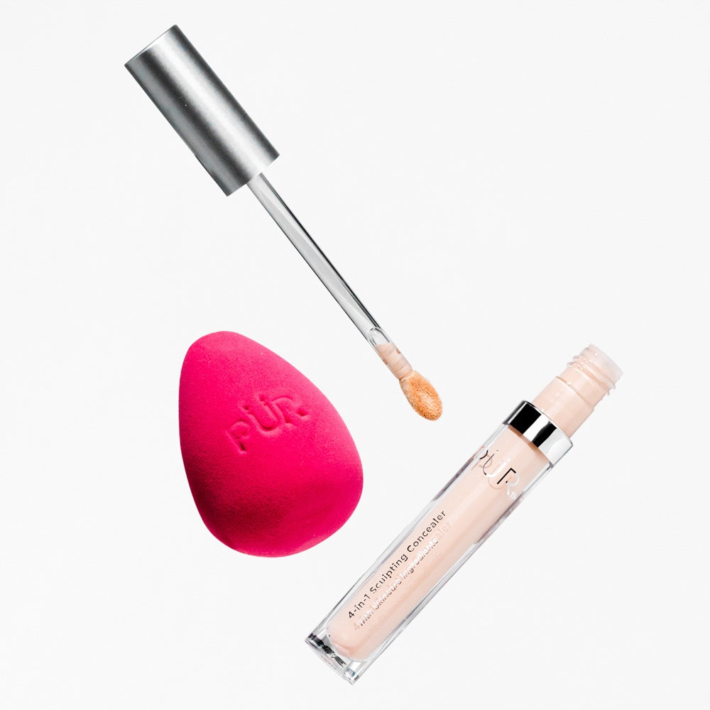 Achieve a flawless, sculpted look with the 4-in-1 Sculpting Concealer & Blending Sponge Duo, featuring the hydrating, medium-to-full coverage concealer infused with caffeine and sodium hyaluronate. Paired with a pro blending sponge for seamless application, this skin- loving duo helps brighten, conceal, and blur the imperfections in just a few swipes.