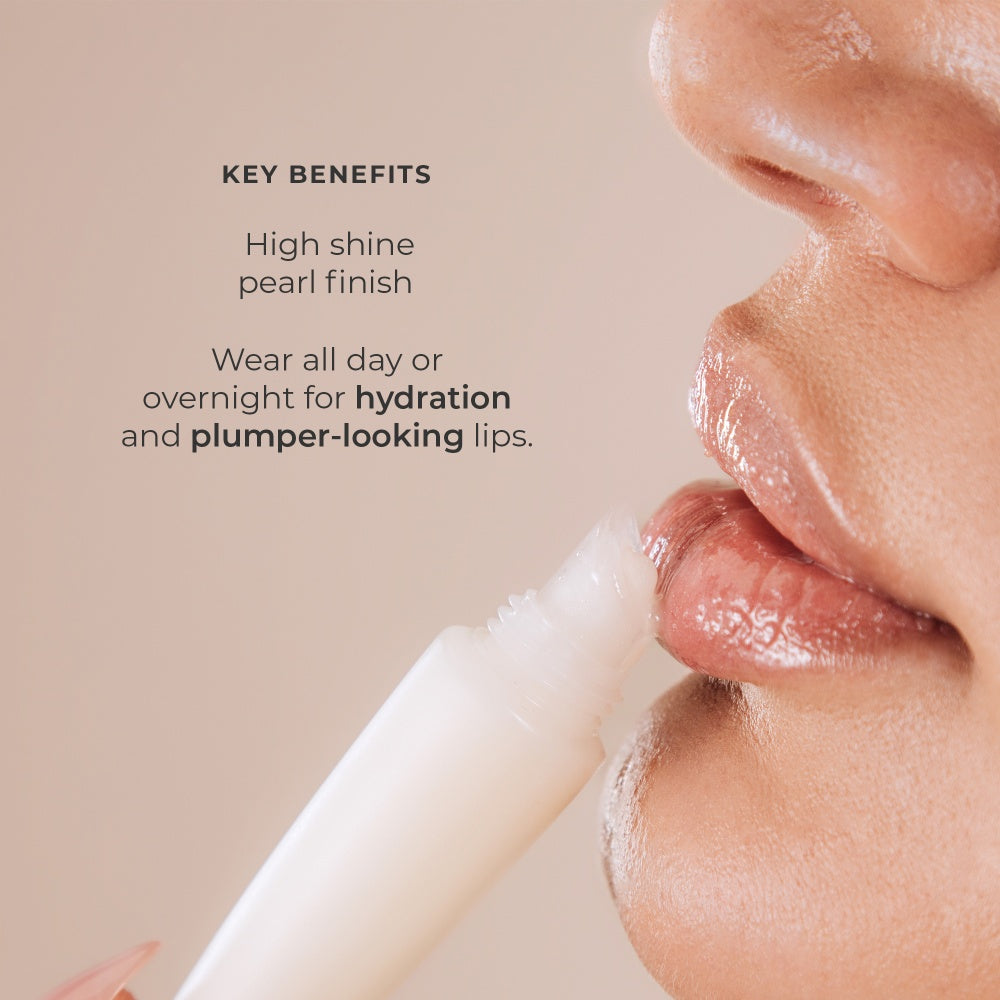 Indulge your lips with this high shine, pearl lip treatment that blurs the lines of skincare and makeup with one simple swipe. The hydrating, cloud-like formula features a blend of conditioning ingredients that help plump the appearance of parched lips for a smoother, softer-looking pout.