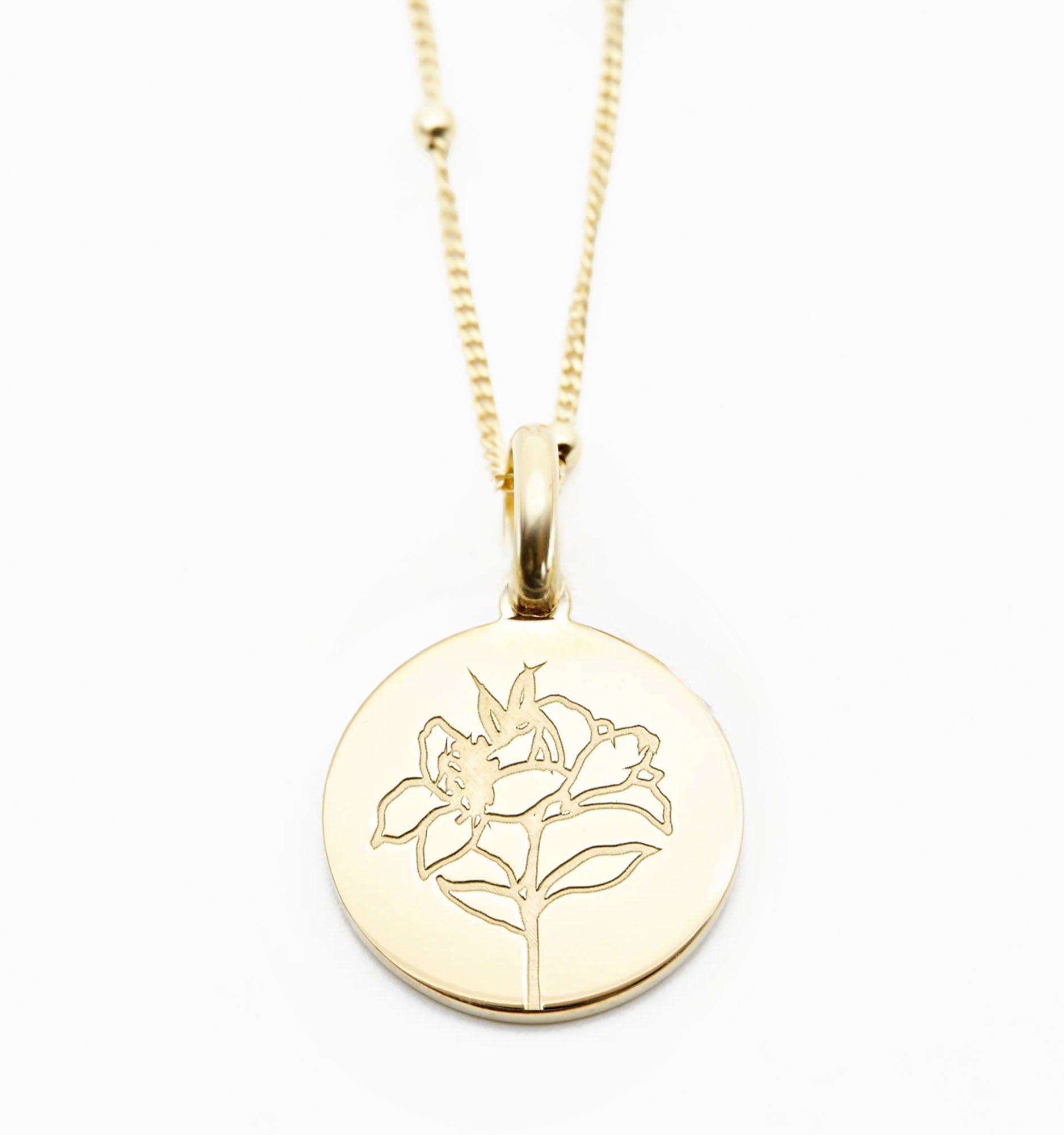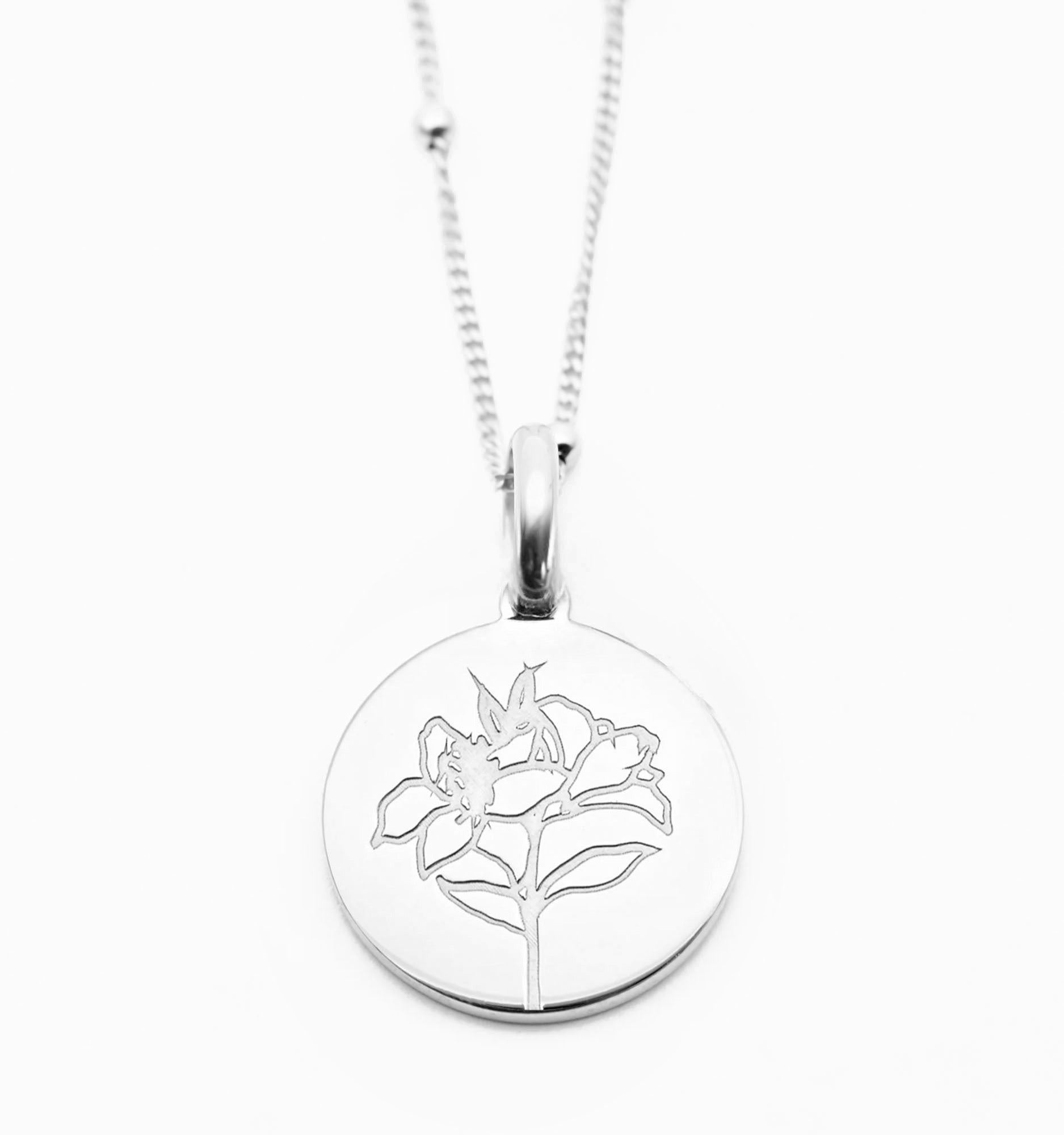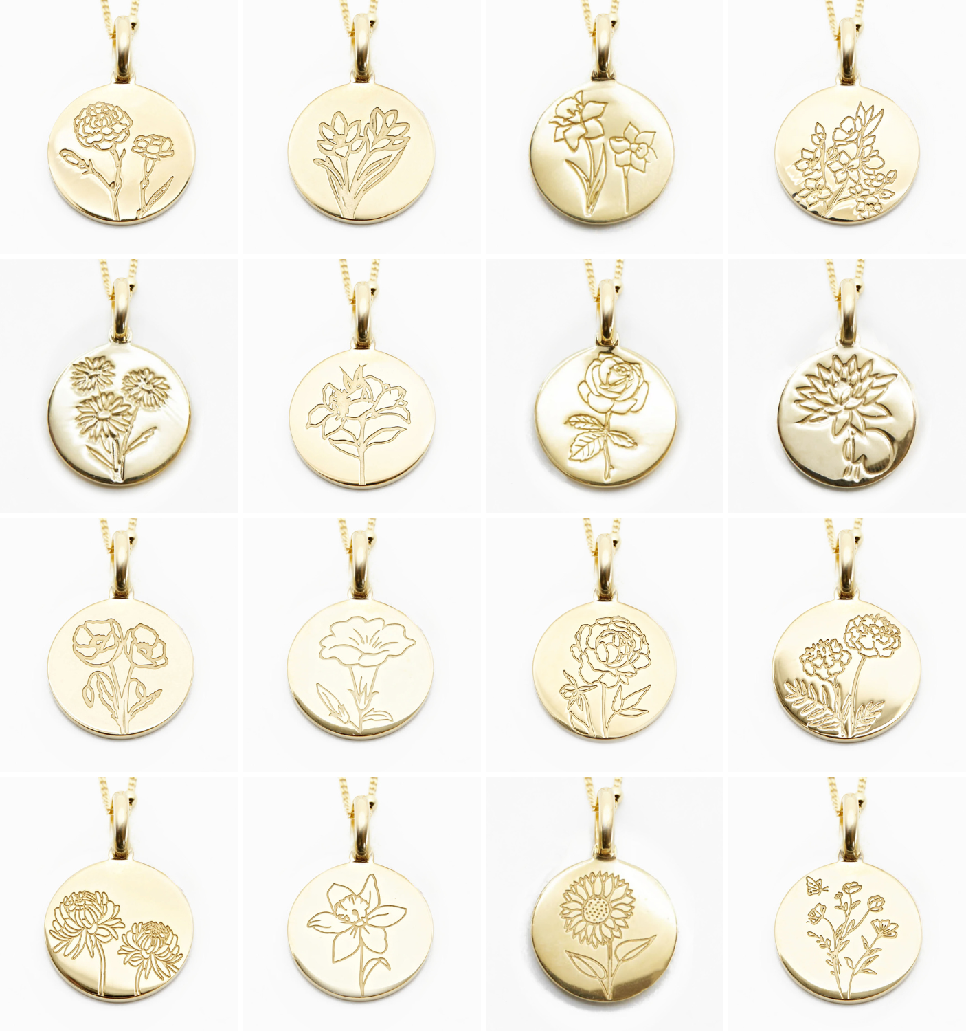 From January’s carnation to December’s narcissus, there’s a Birth Flower Necklace for every month—each with its own inspired meaning. Pick your favorite month, whether it's your birthday month, the warmest month, or your anniversary month.