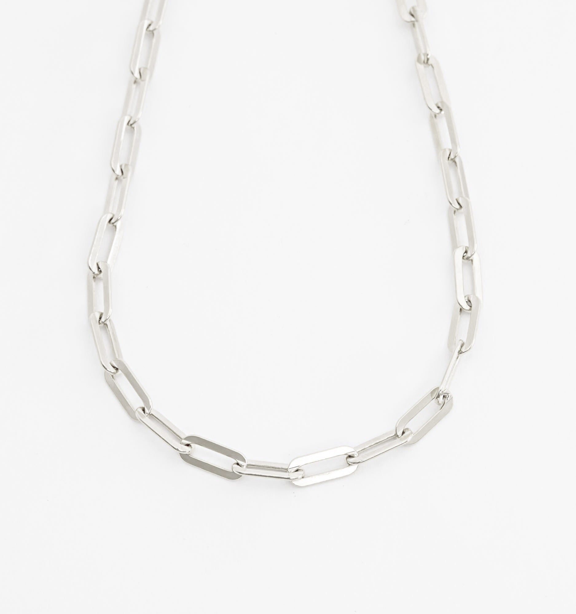Trade dainty for daring with this modern paperclip chain. Each link lays flat and flashes serious shine, turning a simple tee or stacked neckline into an instant style statement. Wear it solo as your signature chain or layer it with charms and pendants—either way, this bold beauty keeps every look crisp and on-trend.