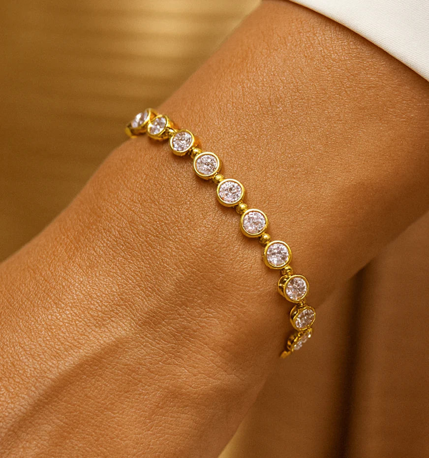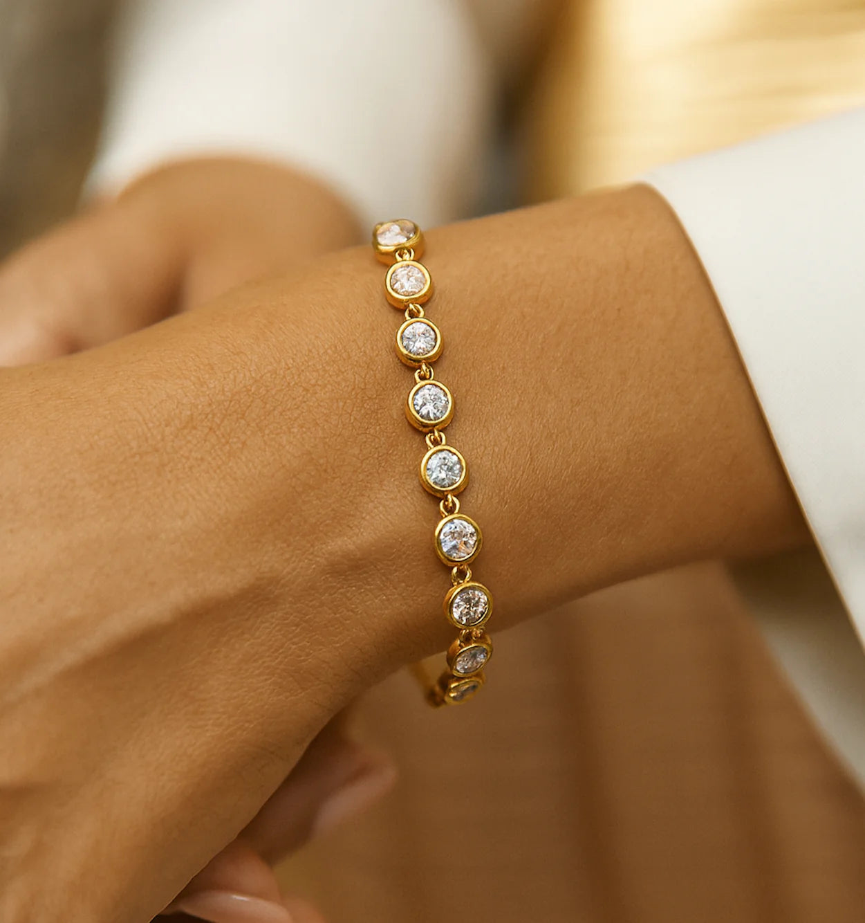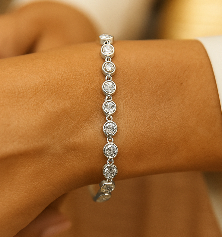A stunning light-catching bracelet! This tennis bracelet is delicate and multi-faceted with its CZ diamonds. Rock this at work, wear to weddings, or style for a weekend away.