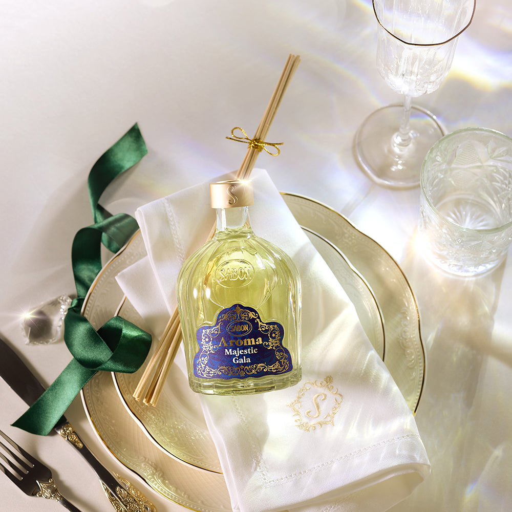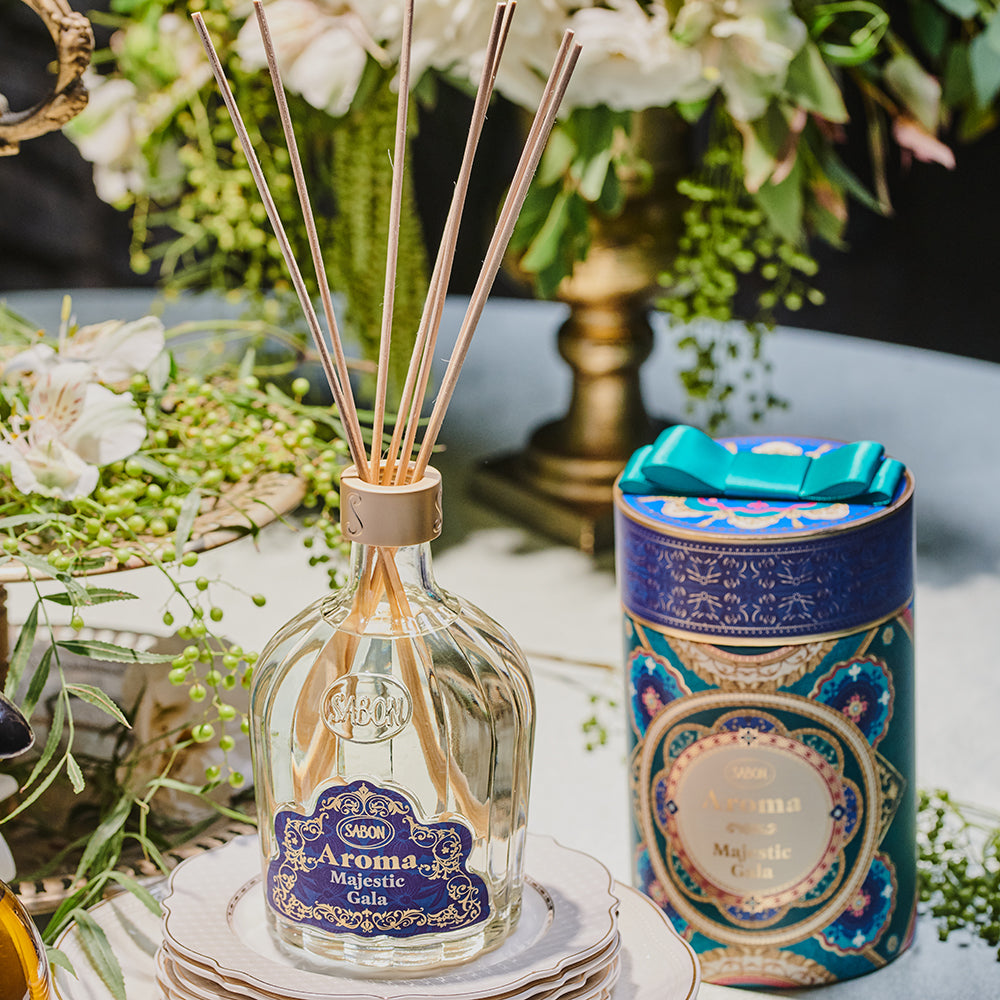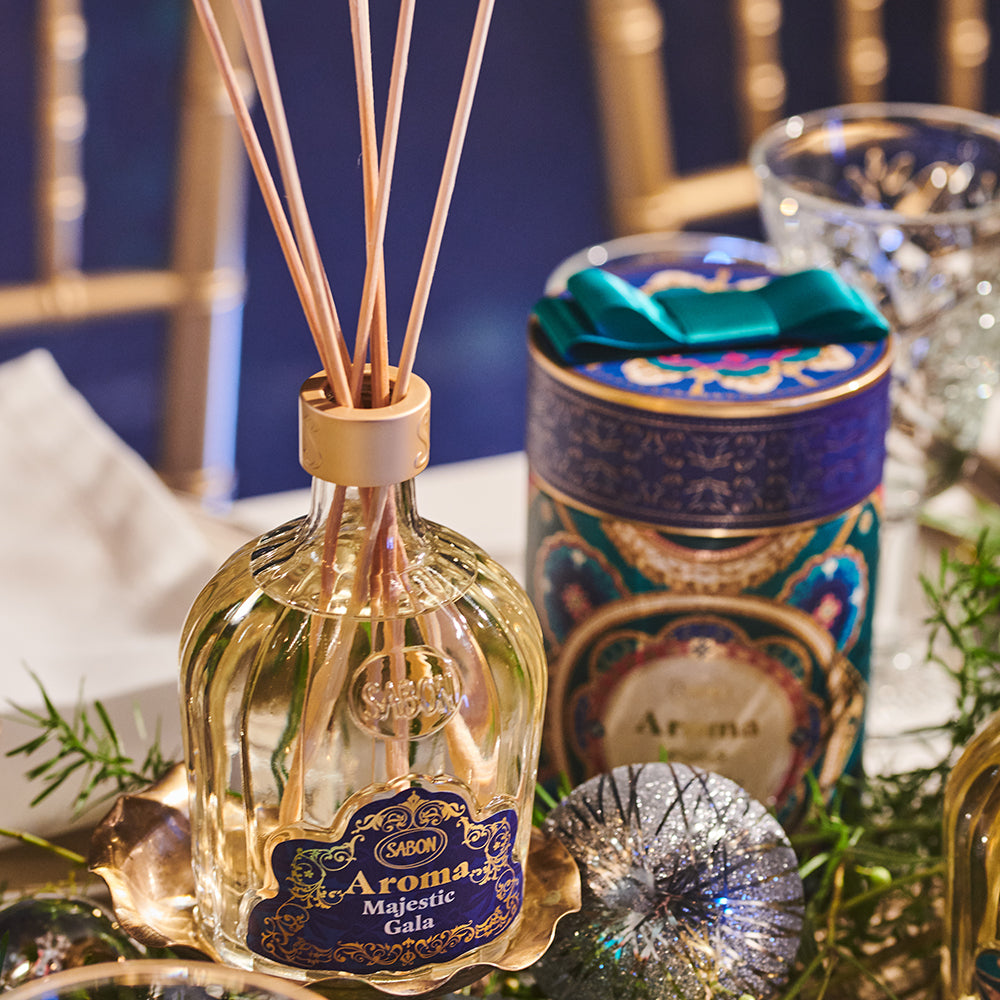 Set the stage for celebration with the Aroma Reed Diffuser infused with the enchanting scent of osmanthus flowers, white magnolia, lush sparkling rosé, and creamy sandalwood. Elegant reeds release a continuous veil of fragrance, filling your home with festive warmth all season long.