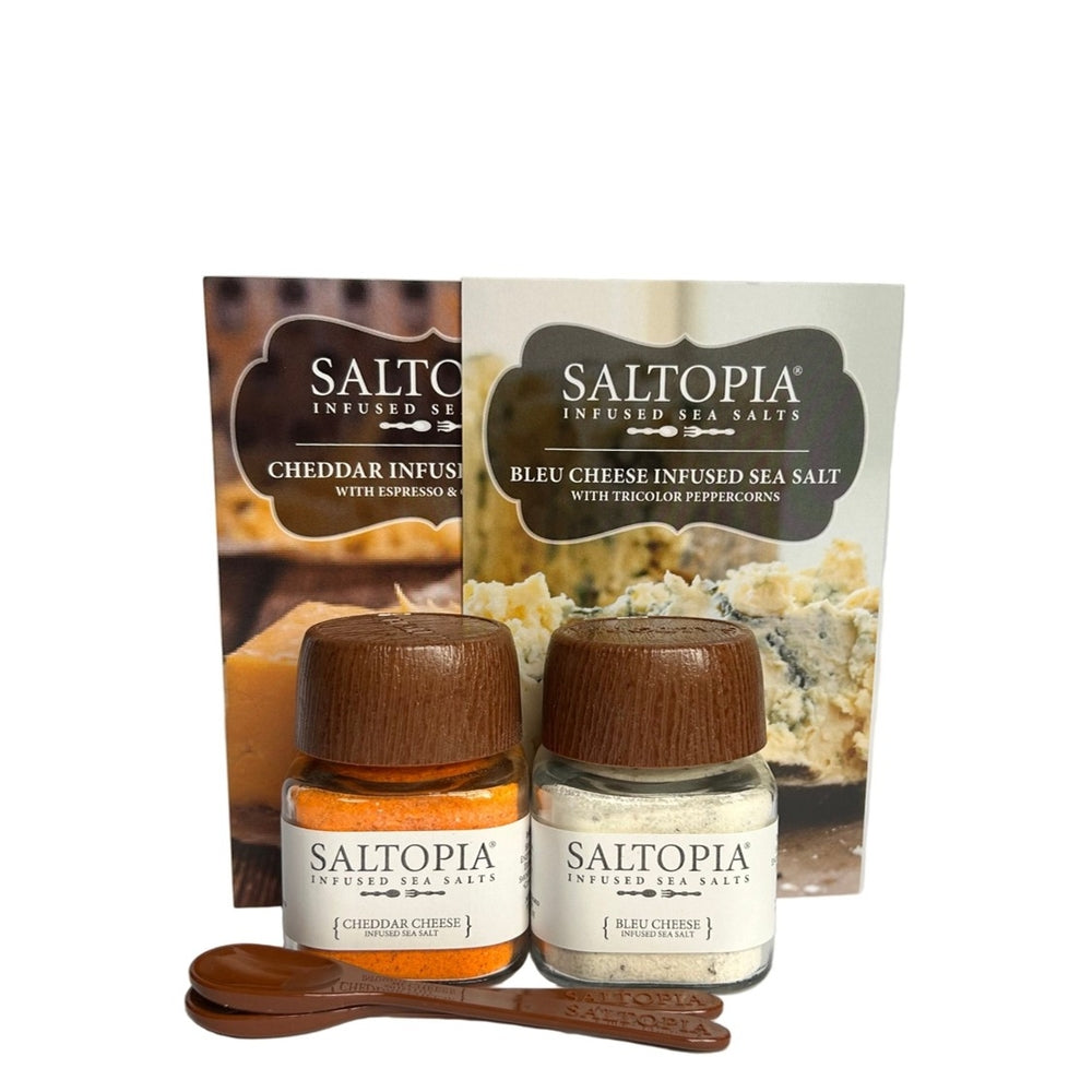 Cheese is a versatile topping that can intensify the flavor profiles of many dishes, from finger food snacks like popcorn and chicken wings, to hearty bowls of chili or pasta. These cheese seasonings offer the desirable creaminess and cheesy flavor, enhancing any savory recipe. Flavors in this set include bleu cheese and cracked peppercorn, as well as rich yellow cheddar with a touch of chipotle. Each glass jar is beautifully packaged with its own recipe card and signature spoon for sprinkling. Either present the combination as a gift, or surprise two different recipients!