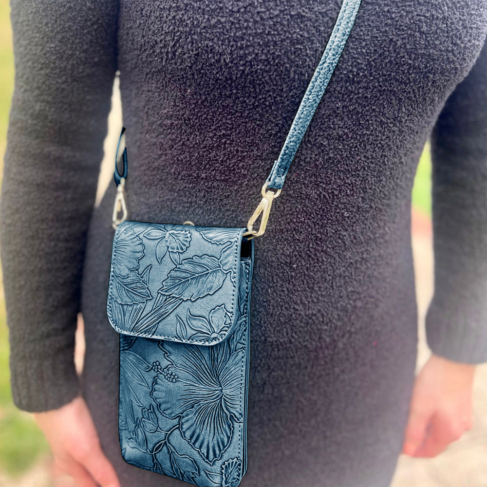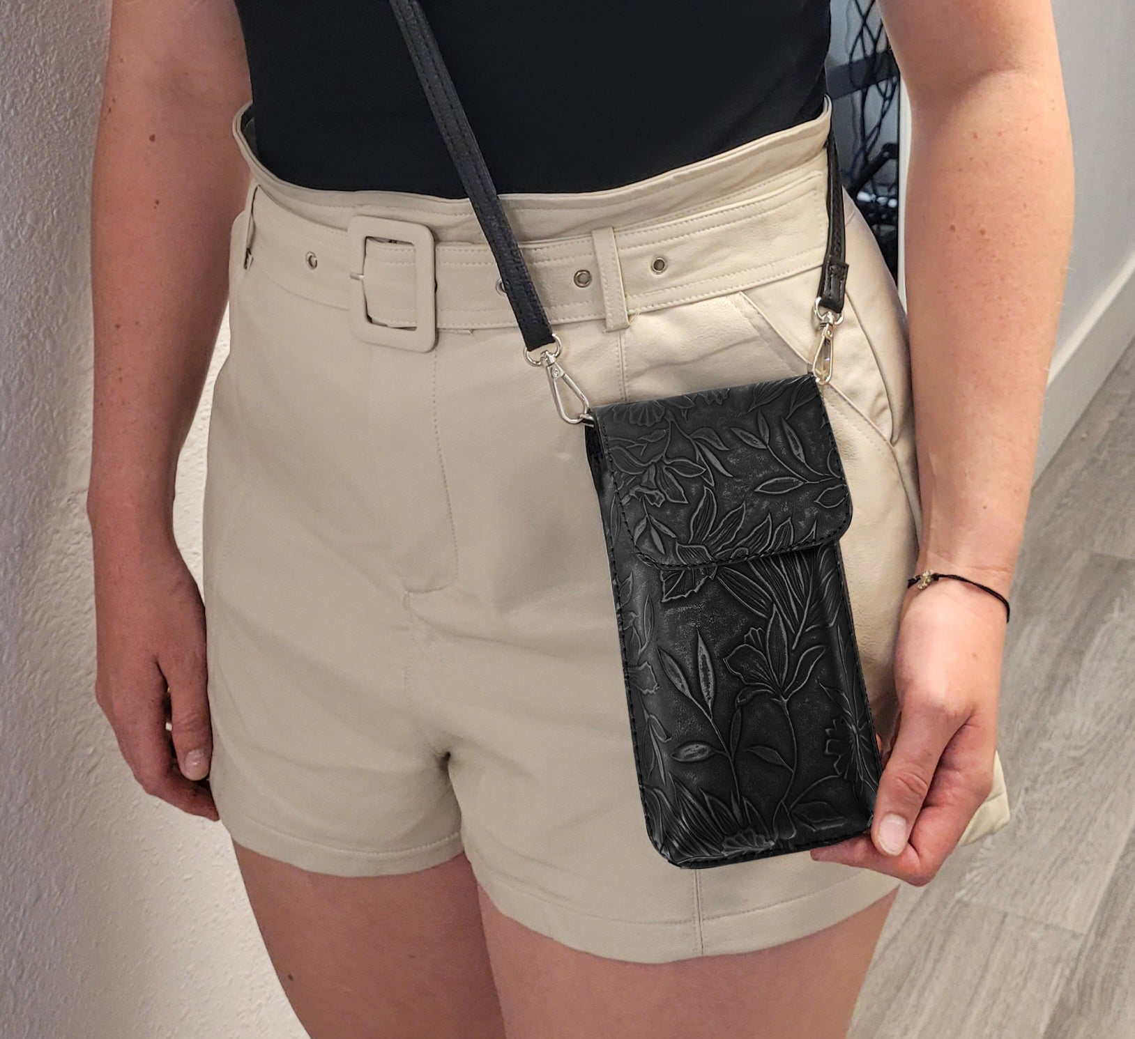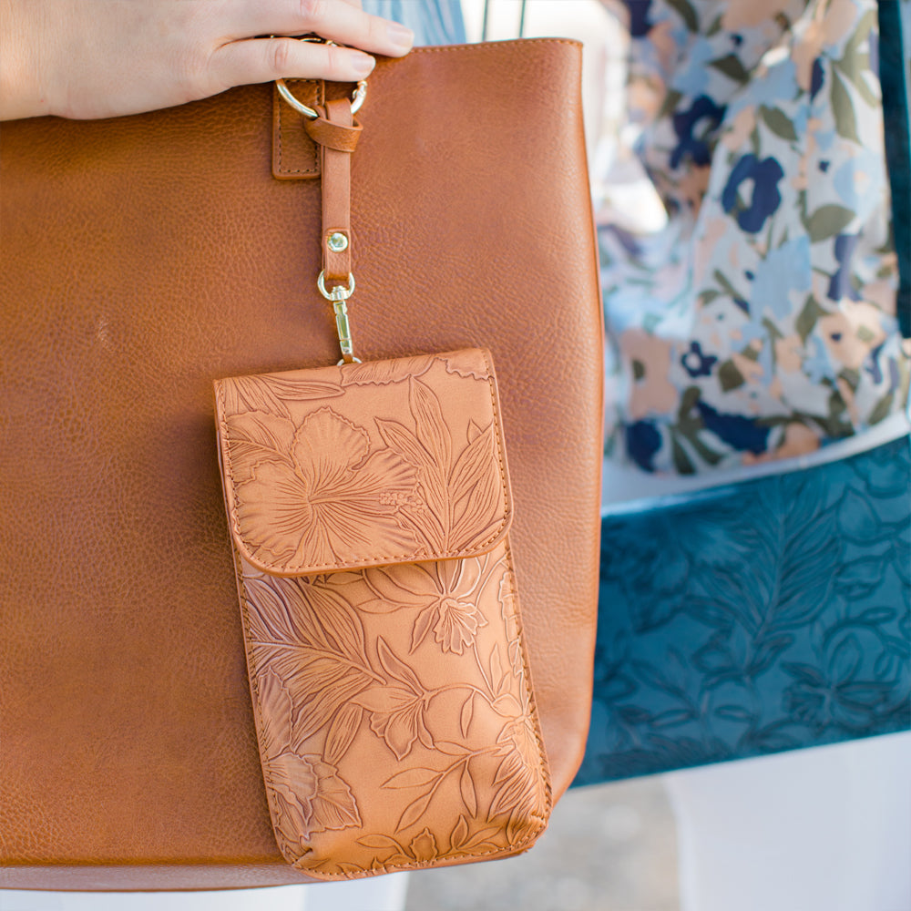 Experience the convenience of a Touch Screen Purse, simply by clipping the Floral Swing Along to your current purse, tote, or backpack. No purse, no problem—just clip it to your belt loop and go! Easily switch to the provided shoulder strap and turn your Swing Along into a crossbody purse, complete with three credit card slots and a hidden cash pocket.