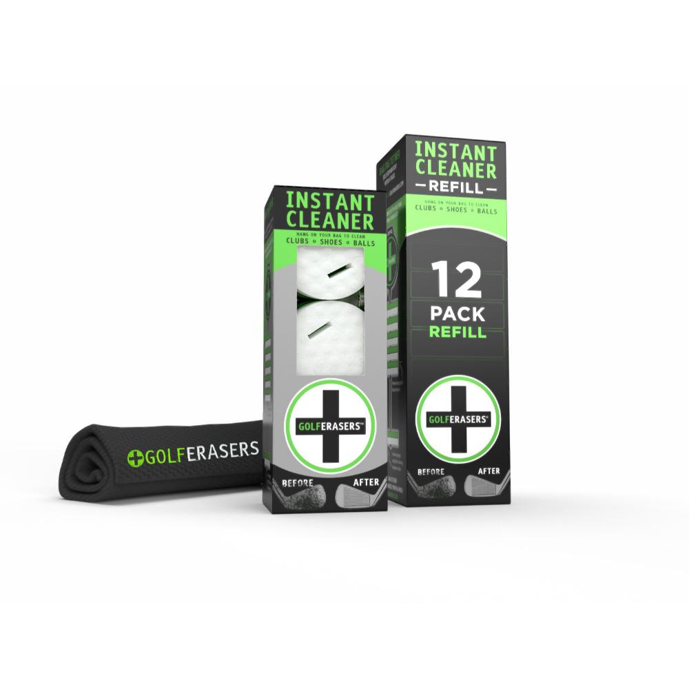 This set combines GolfERASERS sponges and a golf towel to keep your game sharp and your gear spotless. The sponges with a bag tag tether stay on your golf bag for every round, while the refills provide a long-lasting backup supply. Together, with the towel, they deliver fast, water-activated cleaning that keeps clubs, balls, and shoes looking fresh—so you can play cleaner and better.