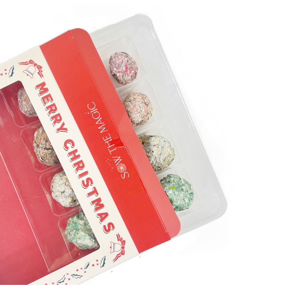 Give the gift of new beginnings with this holiday-themed assortment of 12 seed balls. It features four different planting sets for a variety of sowing options.