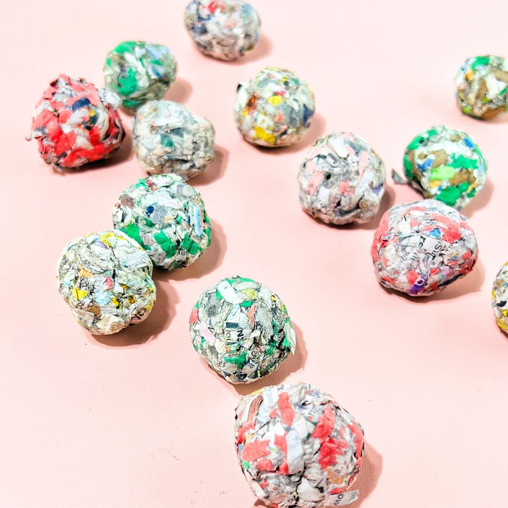 • Each seed ball is handmade with clay and recycled paper