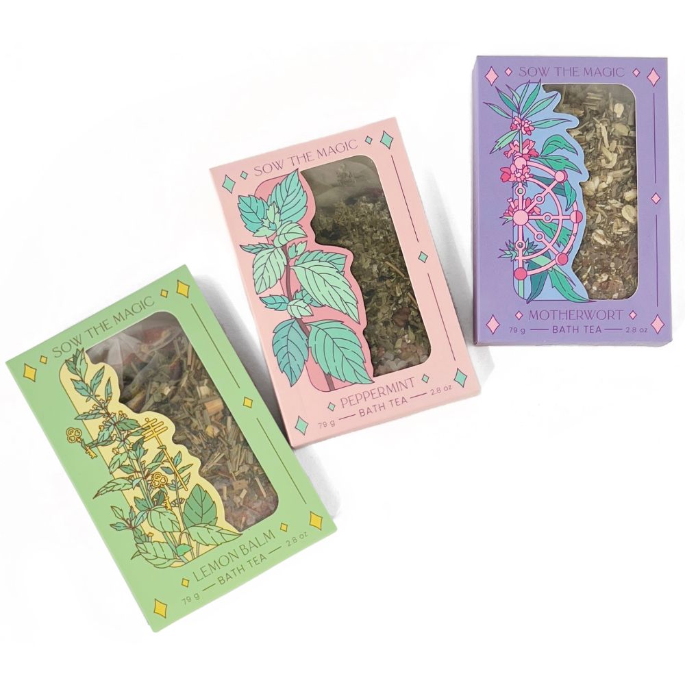 Settle into a divine soak with three hand-blended botanical bath teas that complement your luxurious bath-time ritual. Each soak is packaged in a reusable tea bag, so they're easy to use without leaving any residual petals in the tub.