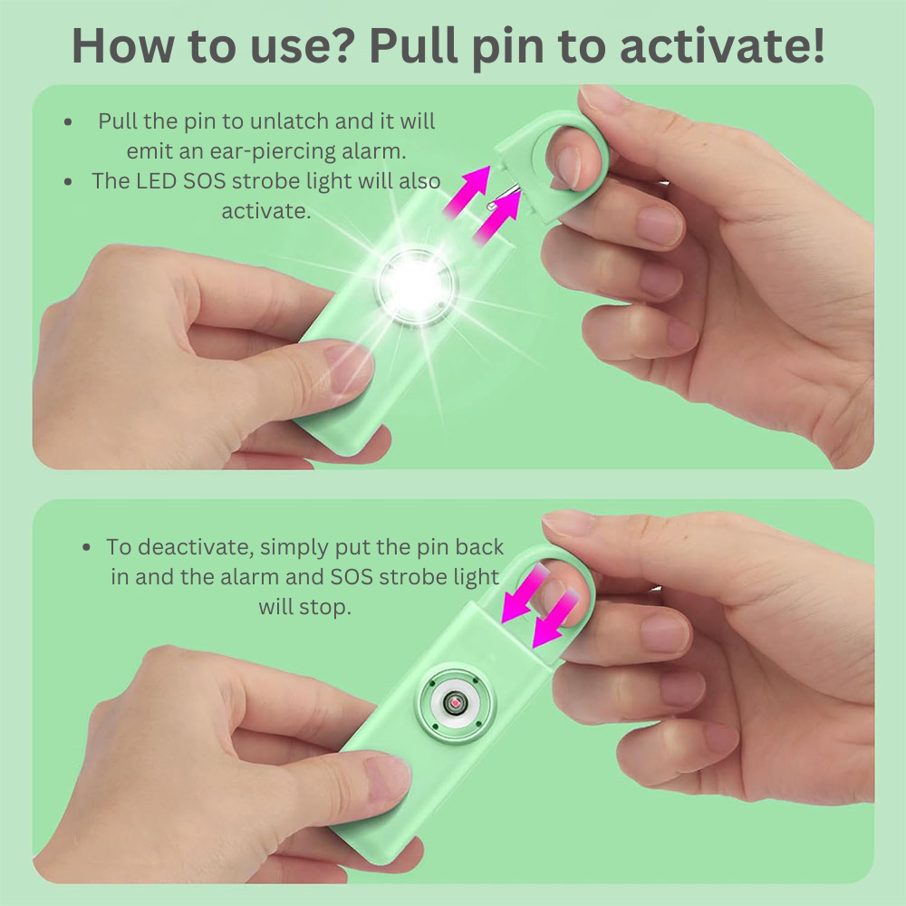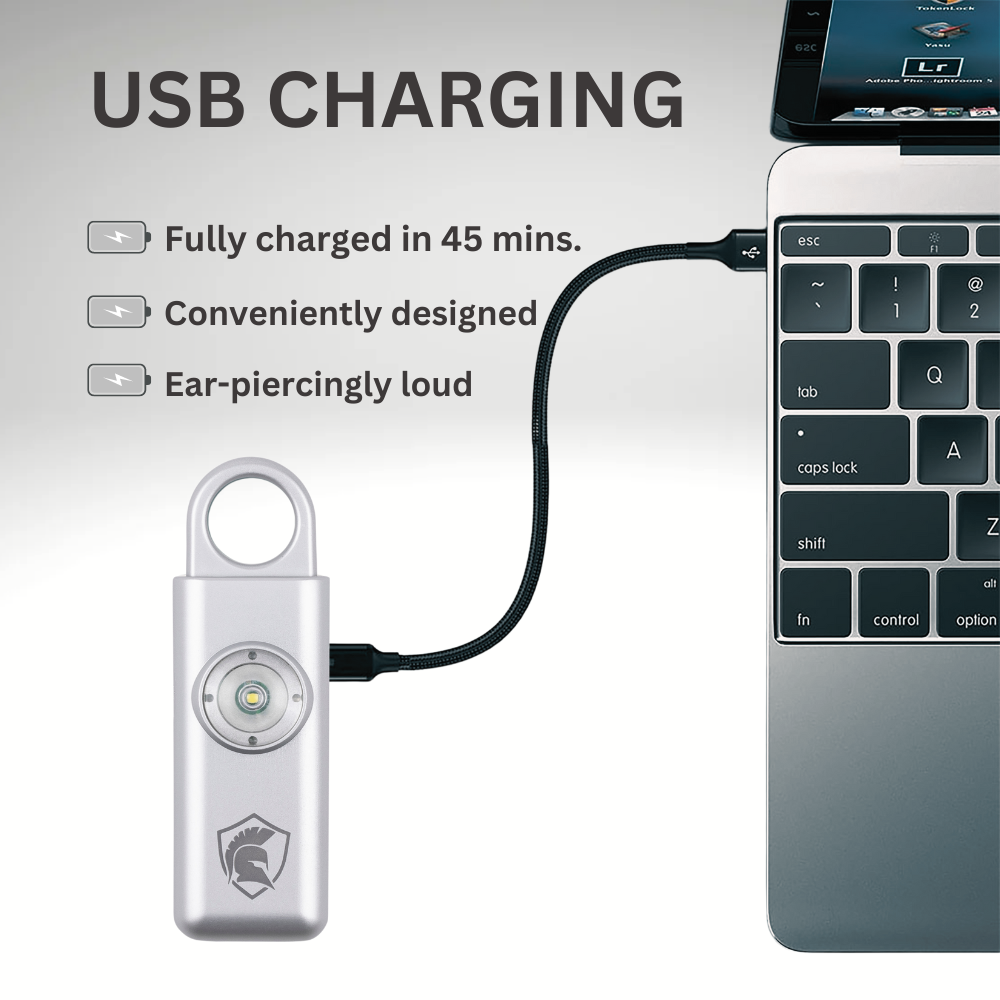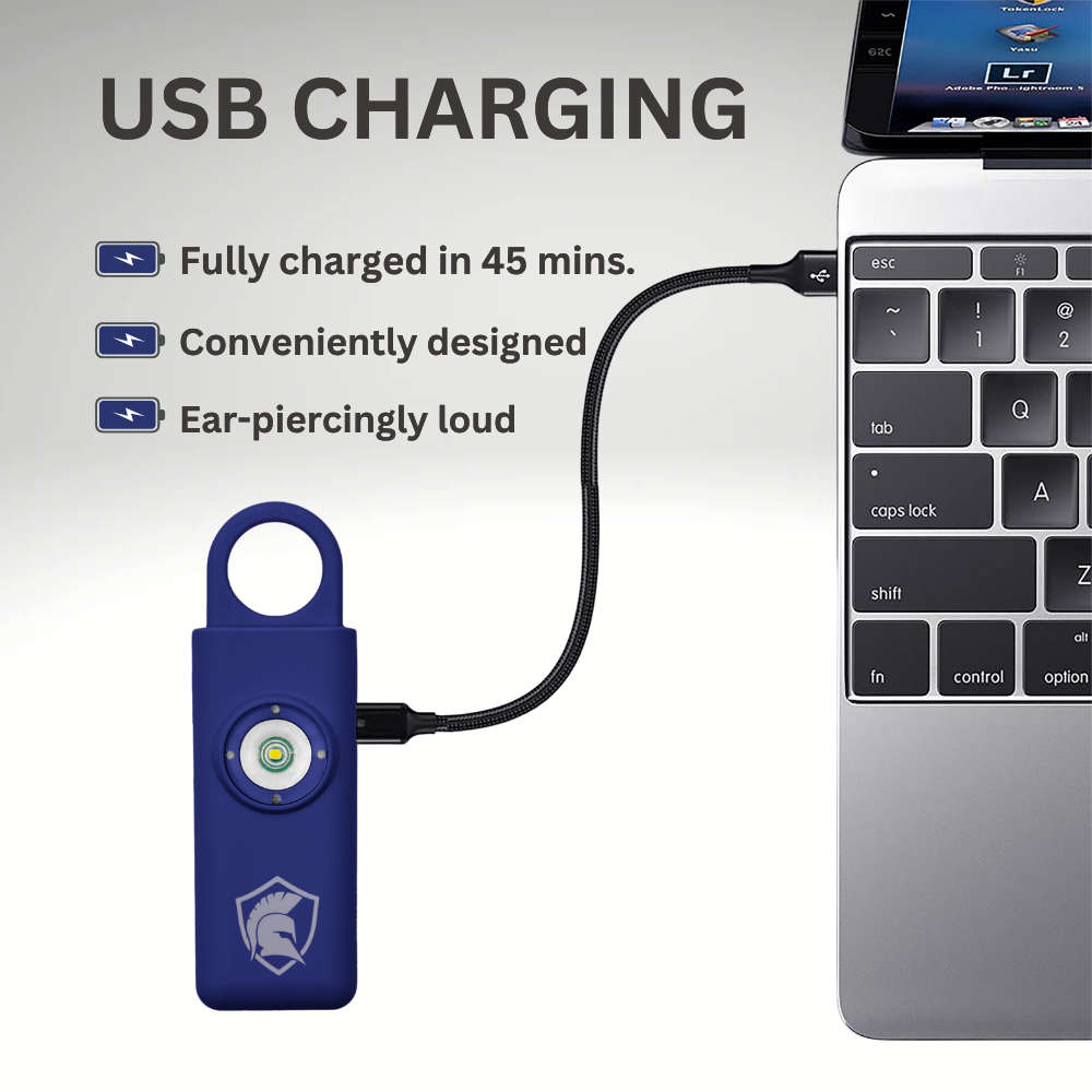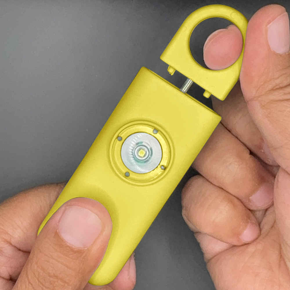 A rechargeable, lightweight self-defense siren that can go anywhere you do. This personal alarm can easily clip to your clothes or bag so that it’s always available to activate when needed. Keep this alarm close to provide peace of mind.