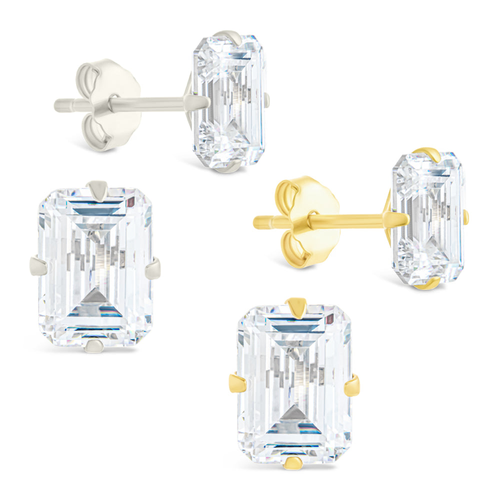 Sterling Silver Emerald Cut Prong Set Stud Earrings
