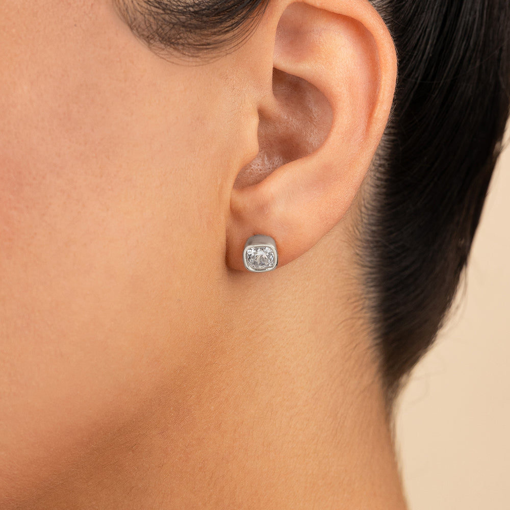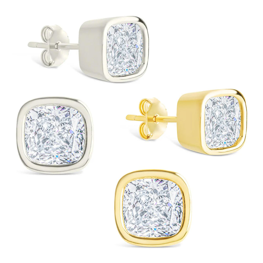 Sterling Silver Cushion Cut Bezel Set Stud Earrings