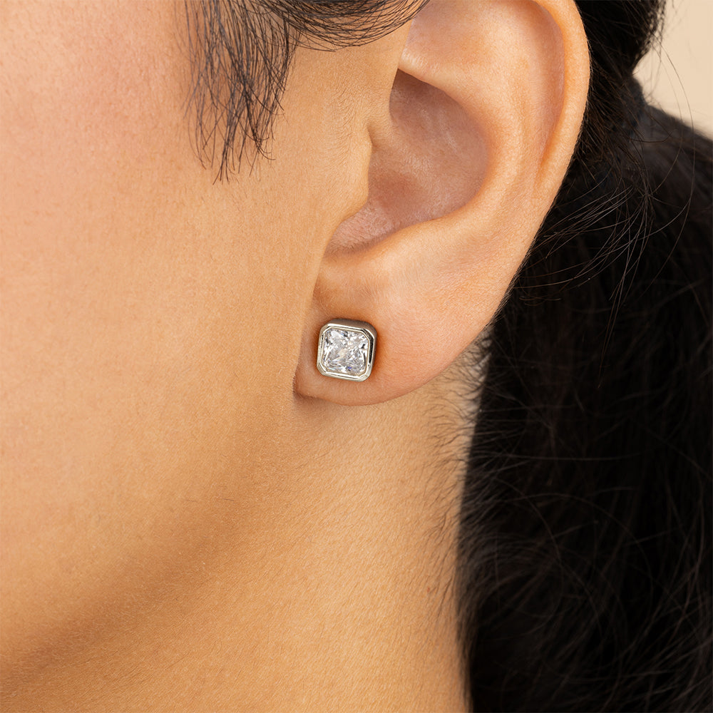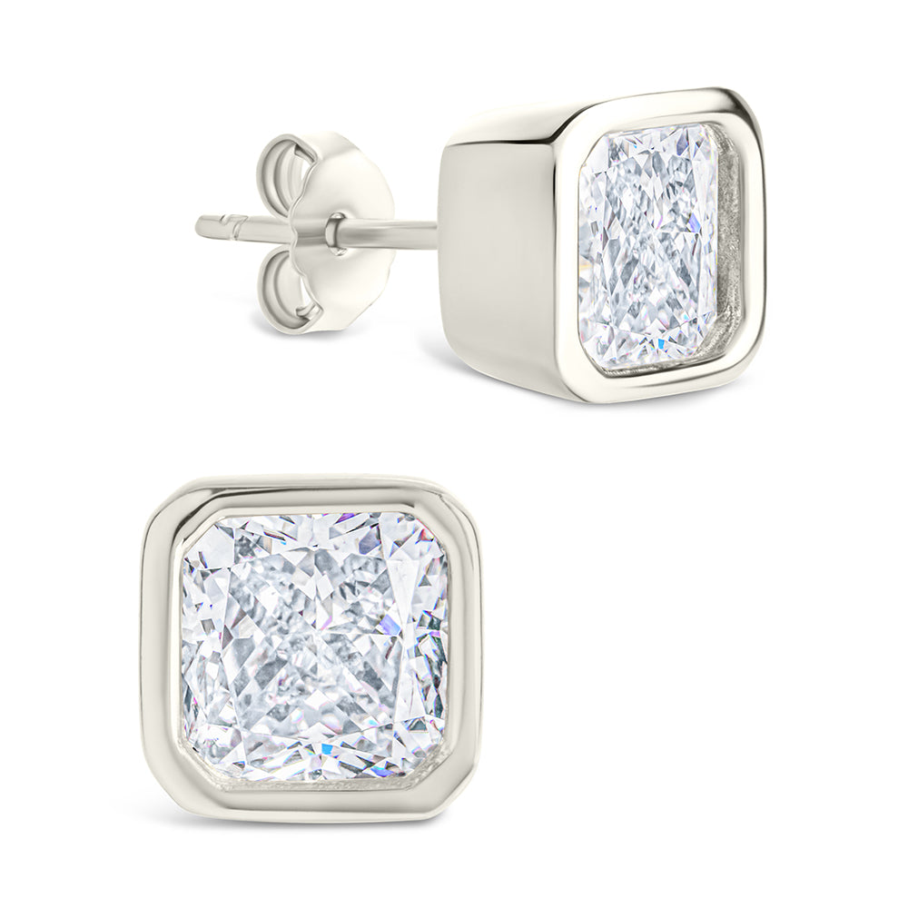 Sterling Silver Radiant Cut Bezel Set Stud Earrings