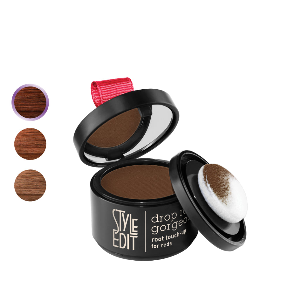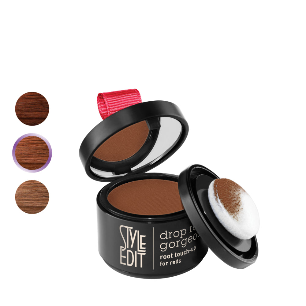 Drop Red Gorgeous Root Touch-Up is an ultra-light root cover-up binding powder for redheads, designed to instantly conceal unwanted grays or root regrowth with just one swipe for salon-worthy hair every day! The unique sponge applicator allows for precise application of the powder—conceal what you want, where you want it.