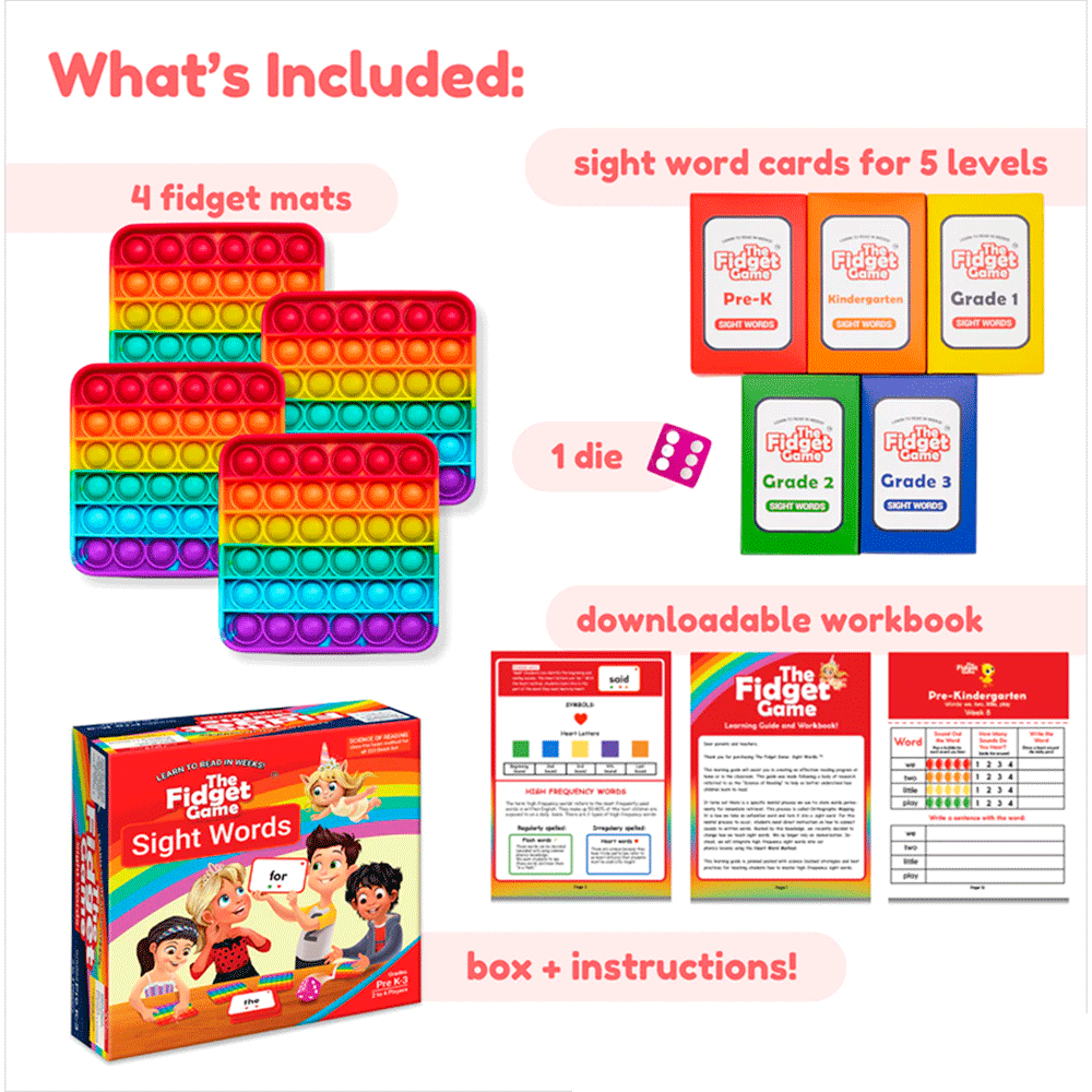 Sight Words turns reading practice into a fun, hands-on experience that helps children master high-frequency words. With 220 words organized by grade level, learners can build confidence in reading while developing fluency and comprehension skills. Designed for Pre-K through Grade 3, this game makes literacy engaging and interactive.