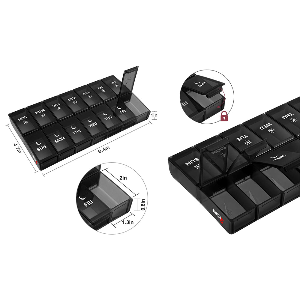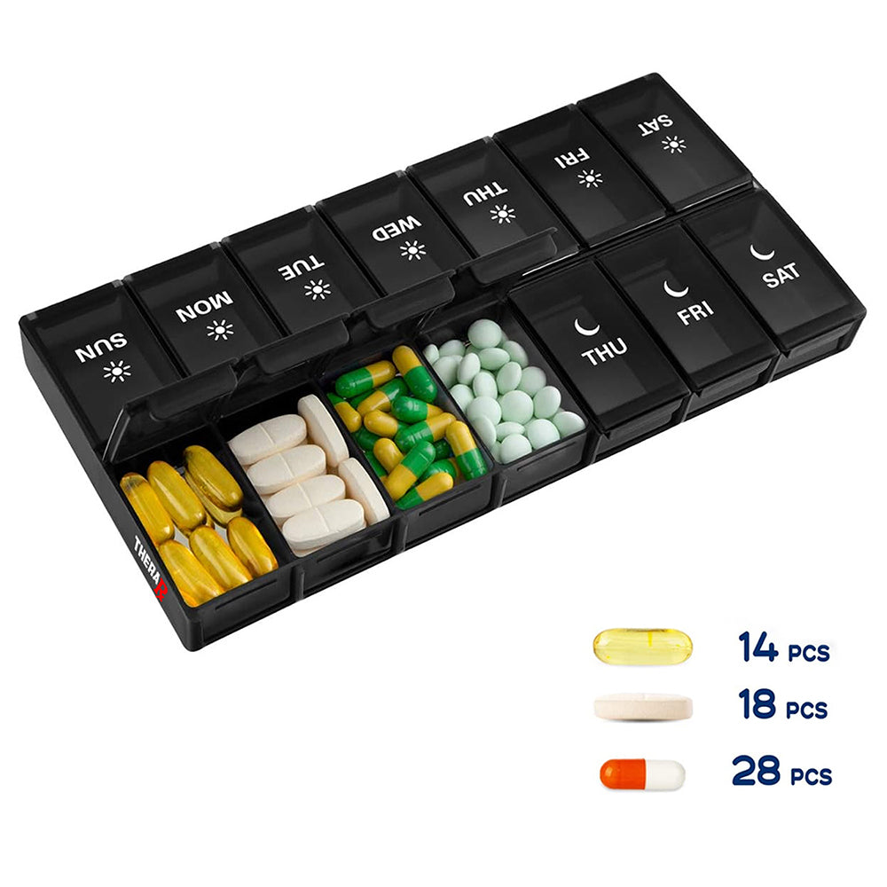 This Weekly Pill & Vitamin Organizer is excellent for dexterity and hand sensitivity issues, featuring compartments that easily pop up. Each compartment has a rounded base for easy pill or vitamin retrieval.