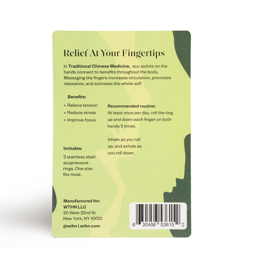 Feel more focused, energized, and at ease—wherever your day takes you. The Acupressure Ring Set is inspired by Traditional Chinese Medicine (TCM) and designed to activate key points on your fingers to support energy flow and overall wellness. With every roll, these small but effective rings provide a gentle massage to your fingers—stimulating nerve endings, promoting circulation, and encouraging your body’s natural healing response.