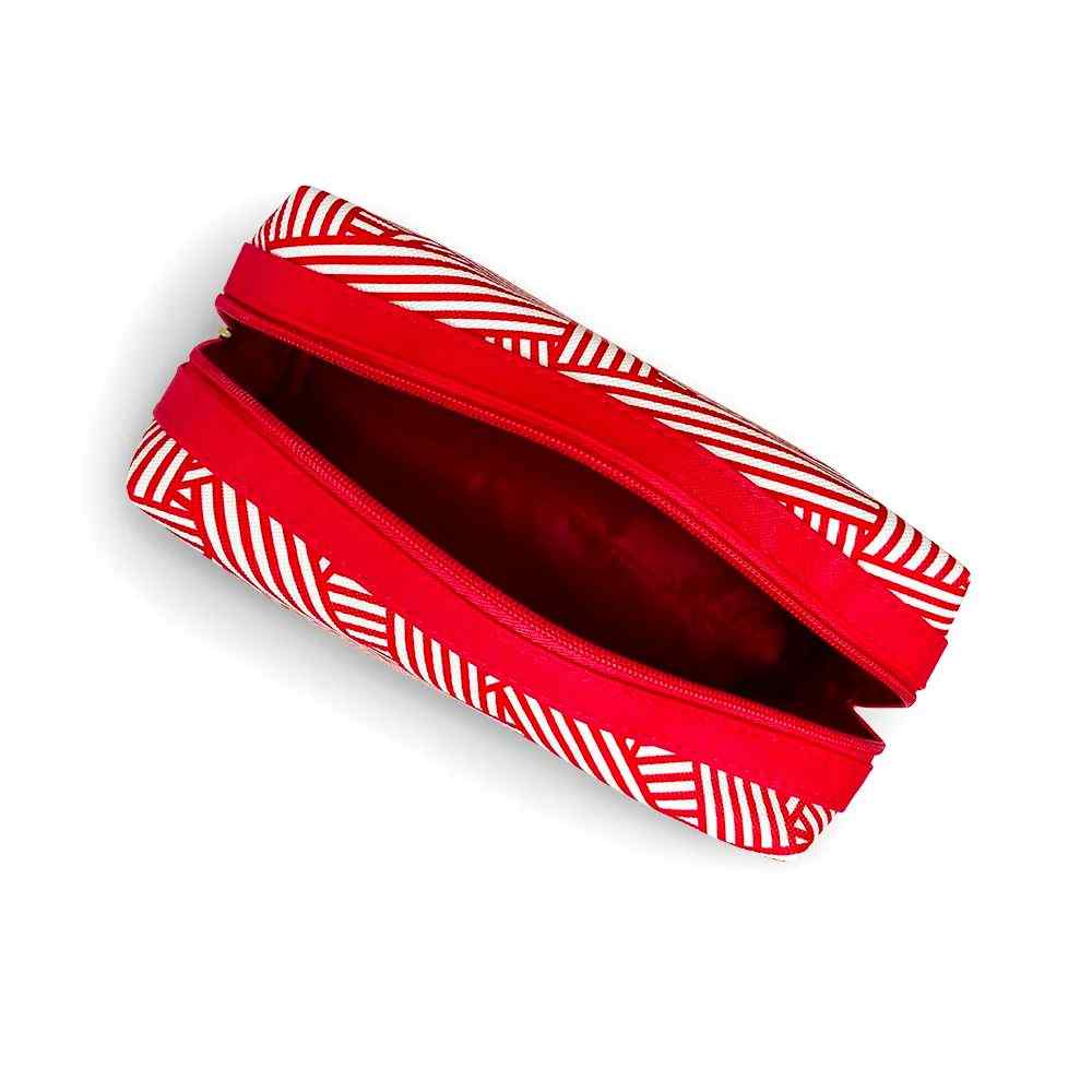 Stay organized in style with the Fuchsia Maze Cosmetic & Travel Bag. Designed with bold fuchsia and white stripes, this versatile pouch is ideal for storing makeup, toiletries, and everyday essentials. With a secure zipper and easy-to-clean lining, this cosmetic bag combines fashion and function for daily use or travel adventures.