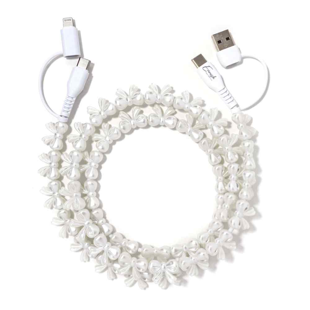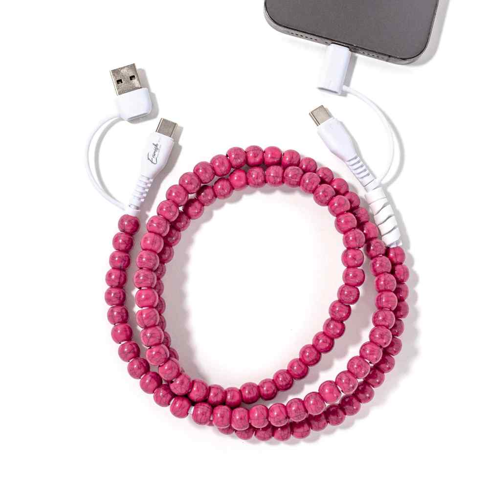 Charge your phone in style with a beaded charging cable. This 2-in-1 USB cable for Type A, Type C, and Lightning devices is not just pretty—it’s powerful! It features 60W fast charging and quick data transfer. Available in two lengths for versatility.