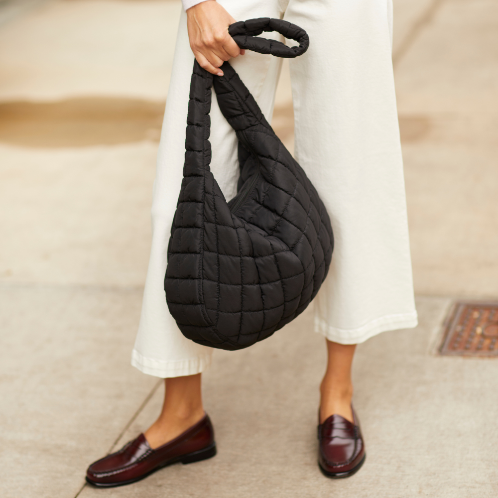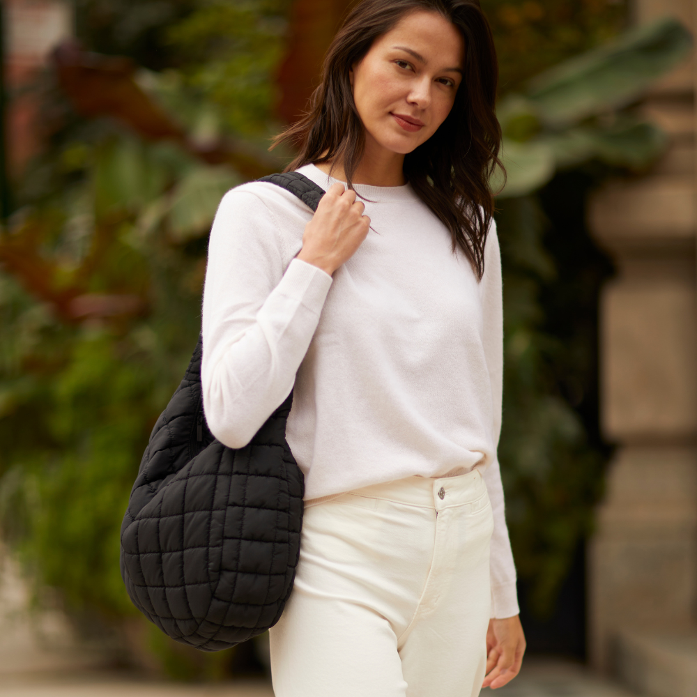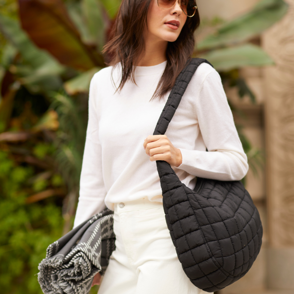 This soft, quilted crossbody bag is a traveler's dream! It’s large enough to carry all of your essentials and more, yet folds up compactly to easily fit into your suitcase without extra bulk. Super lightweight, this is the ideal bag for traveling near and far!