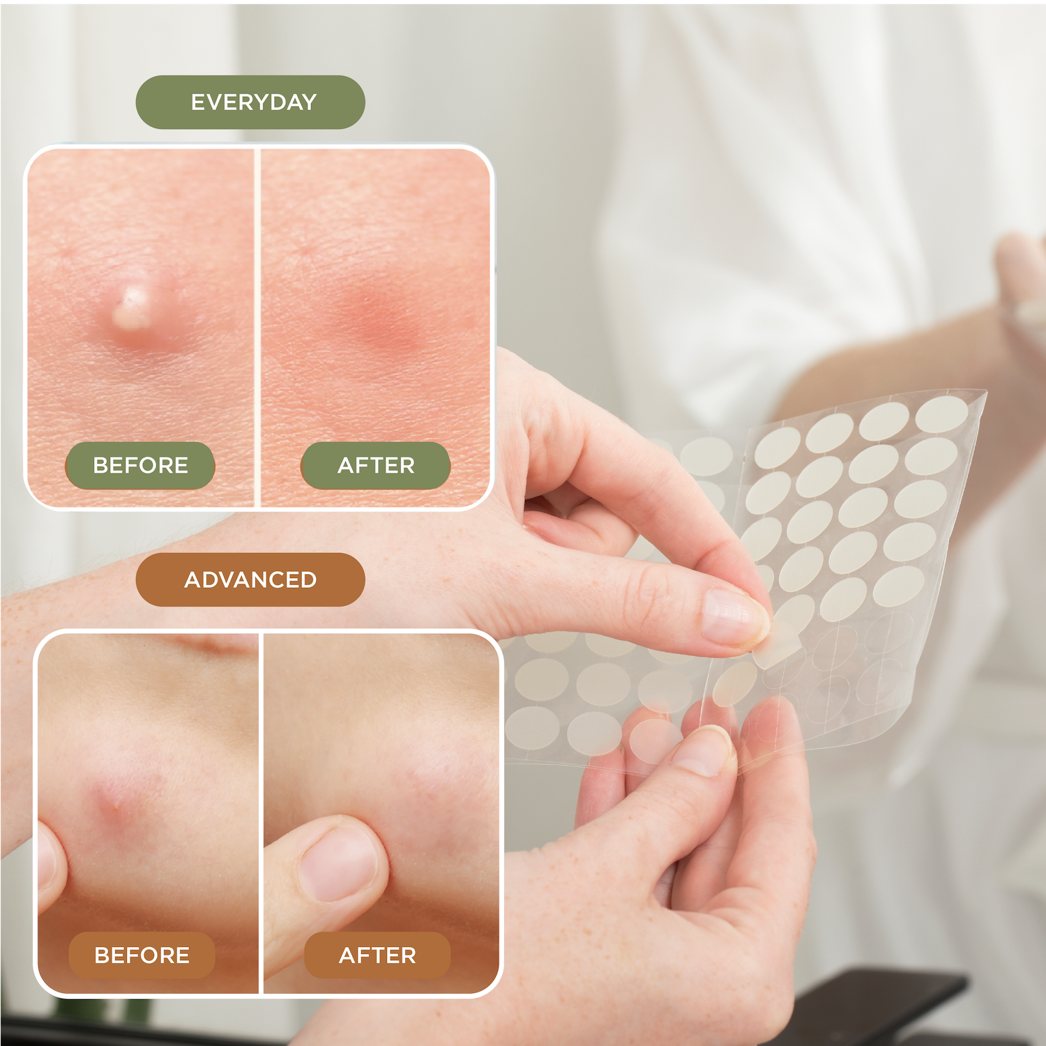 Two patch types for overnight blemish-erasing magic. The Pimple Patch Duo pairs Everyday and Advanced patches so you can target any blemish with precision—because not all pimples are created equal. Designed for clean, clinical performance that disappears on your skin while you do you.