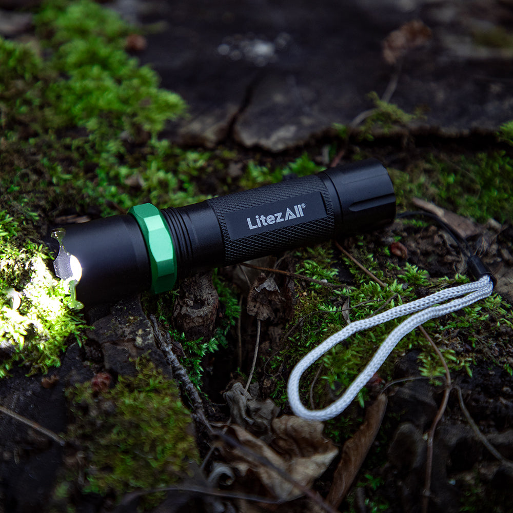 • Push or pull the head of the flashlight to adjust the light for a narrow or wide beam
