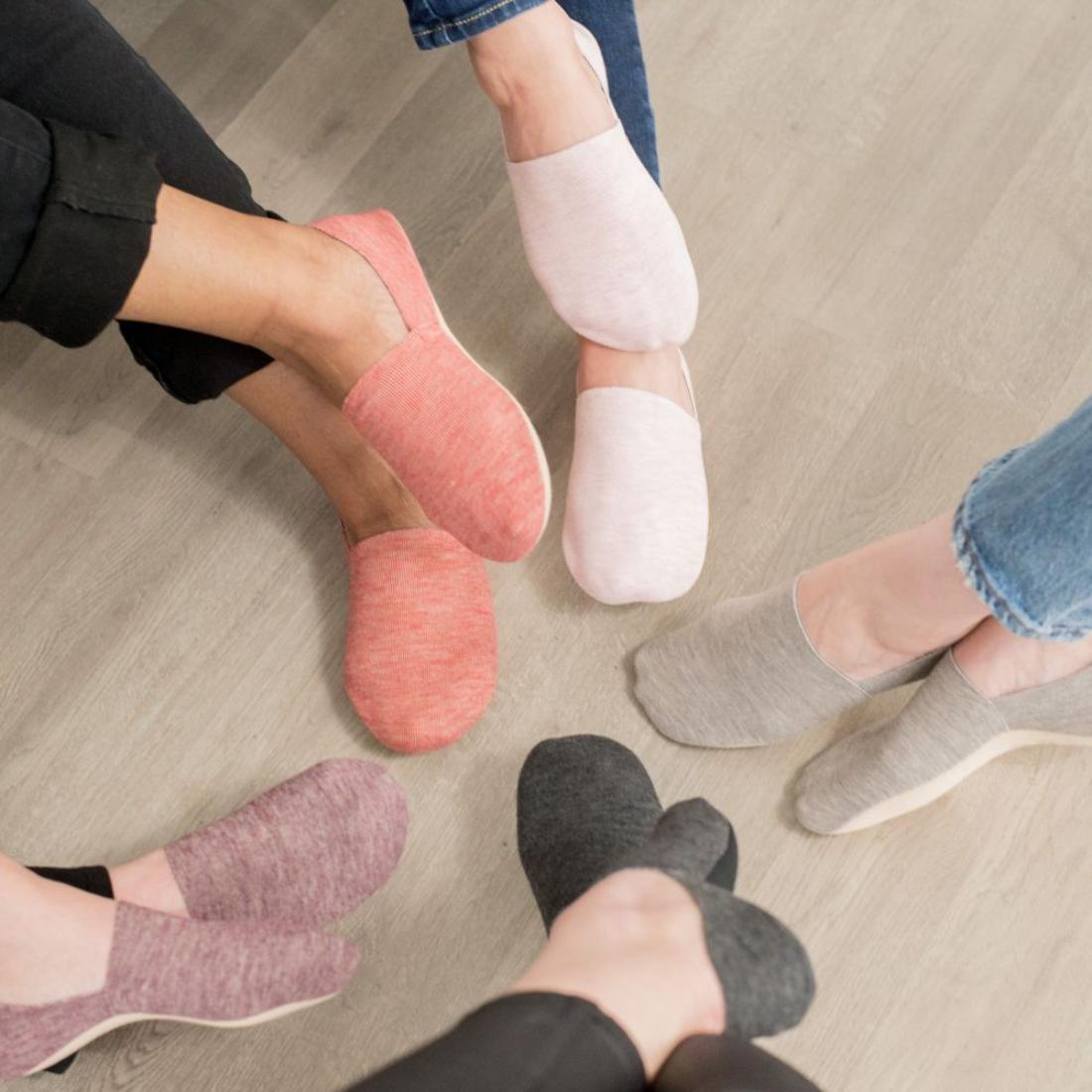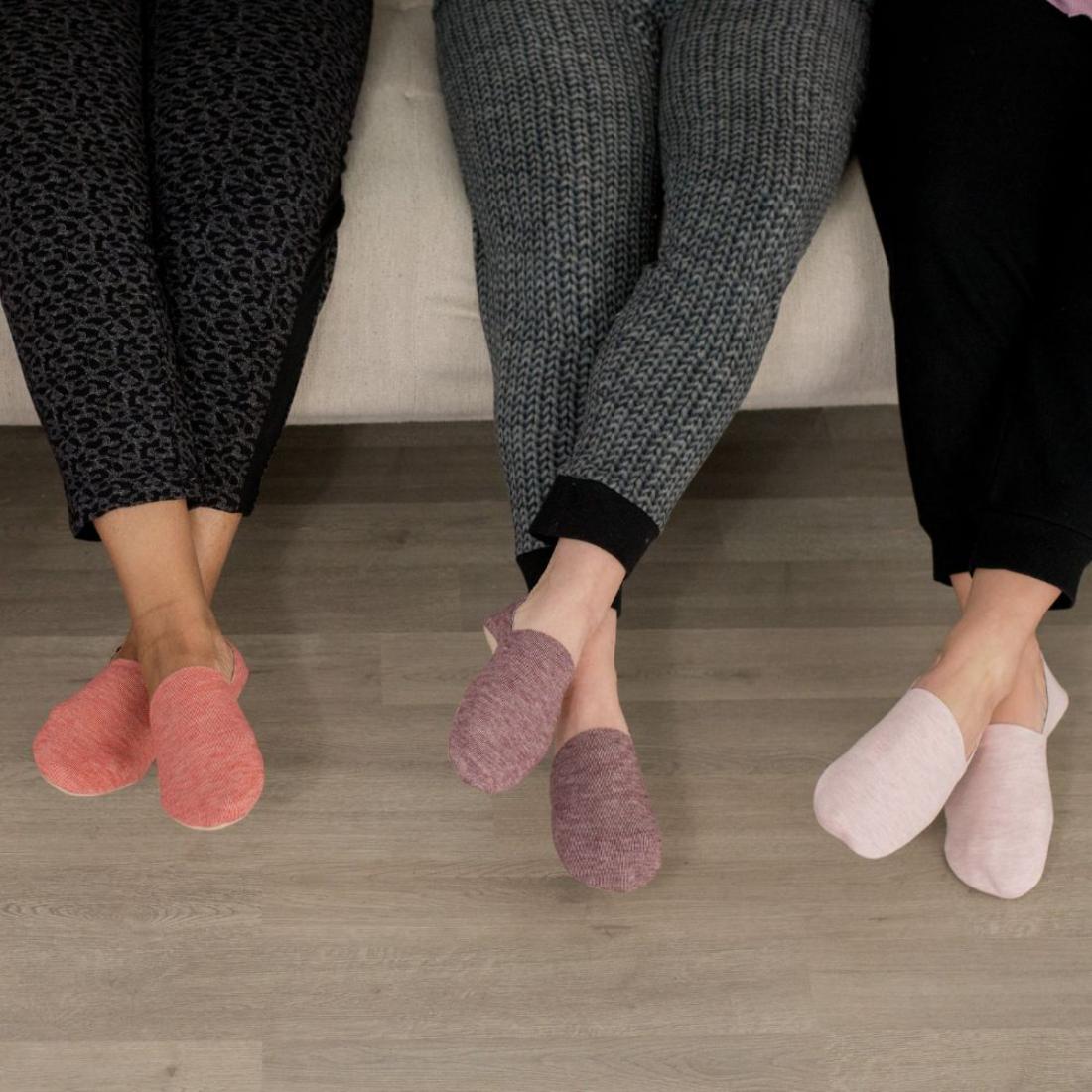 Feel the ultimate comfort of a cushioned bottom slipper sock combined with an ultra-thin upper that allows you to go from lounging to shoes in a snap! These socks feature an anti-skid bottom, extra-wide heel grip, and 360° comfort band. Put your feet up in style and experience superior comfort with a fashionable, no-show design.