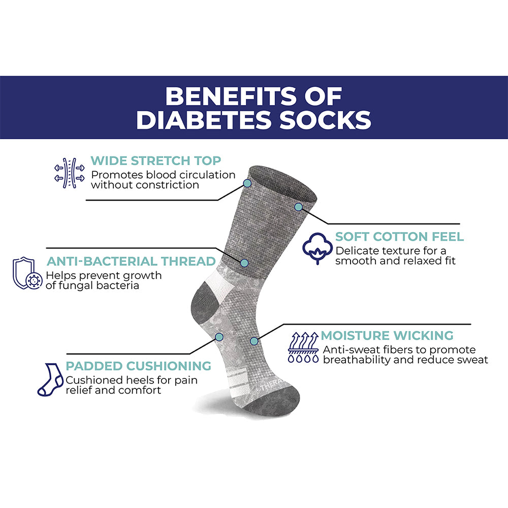 These diabetic socks offer a combination of quality, comfort, and style. They’re breathable, soft, and well-fitting, making them the ideal choice for men and women. Designed for optimal performance, these socks are recommended for people with diabetes, edema, and neuropathy caused by circulatory problems.