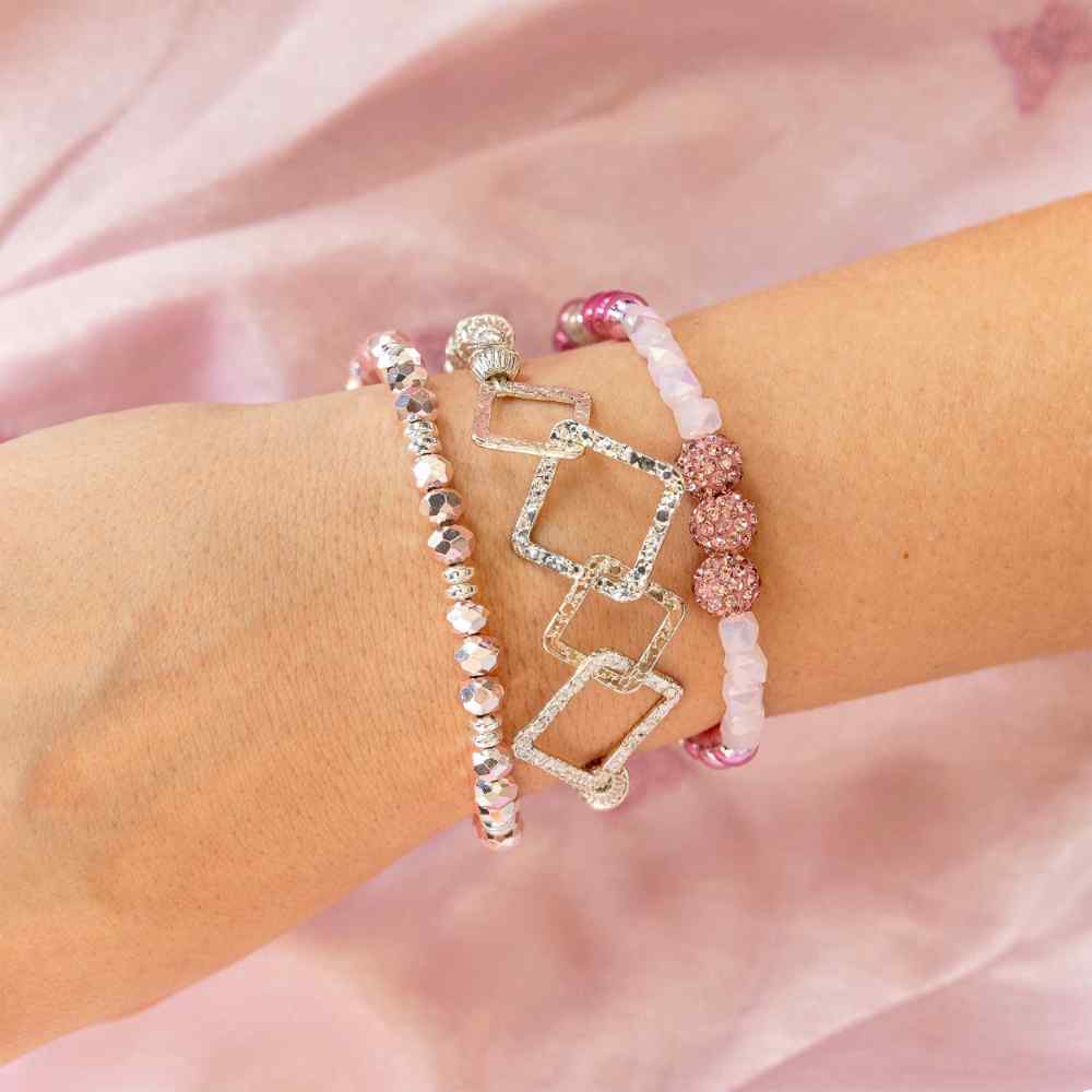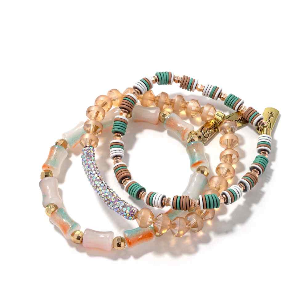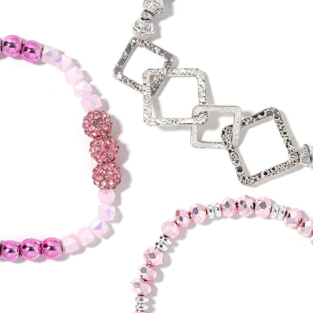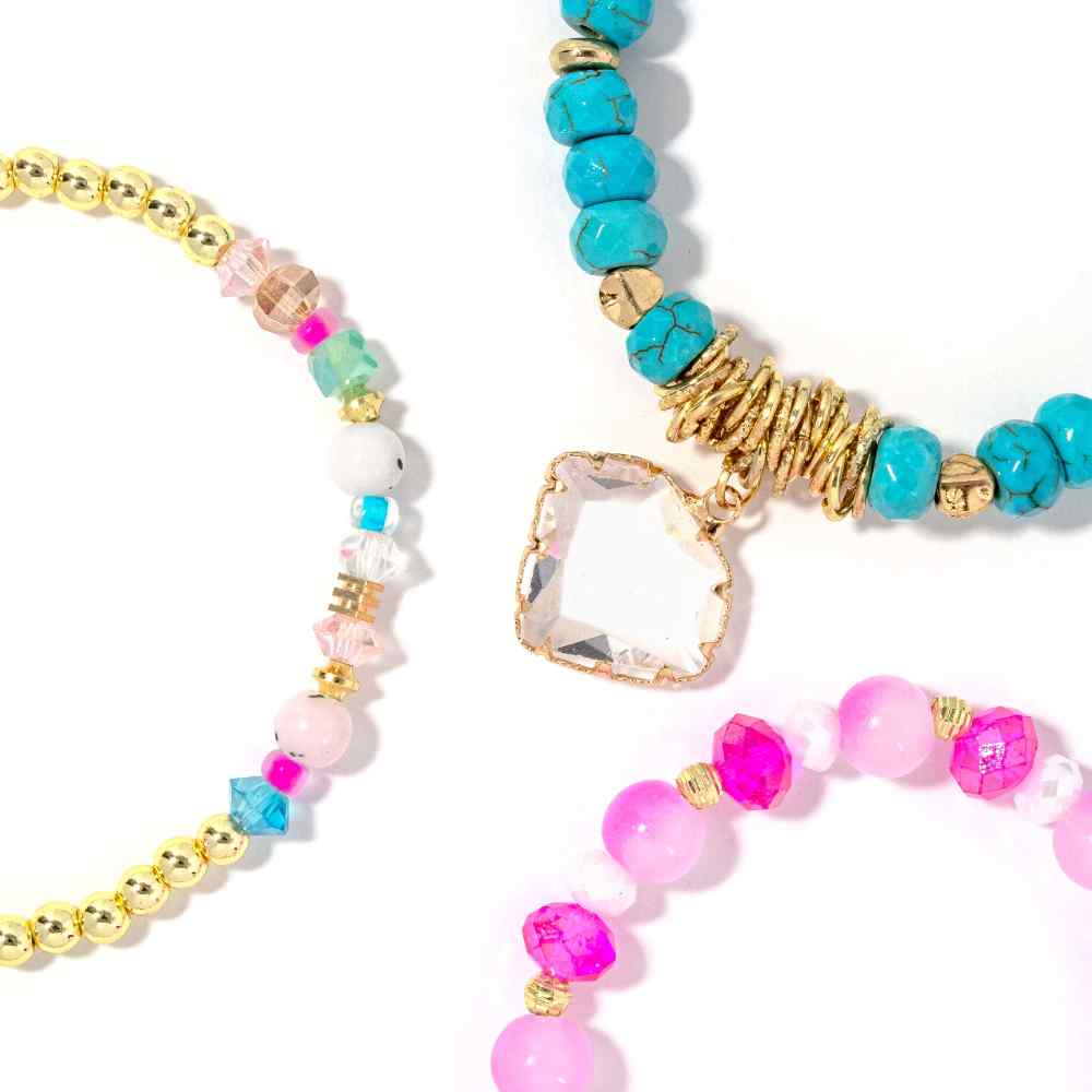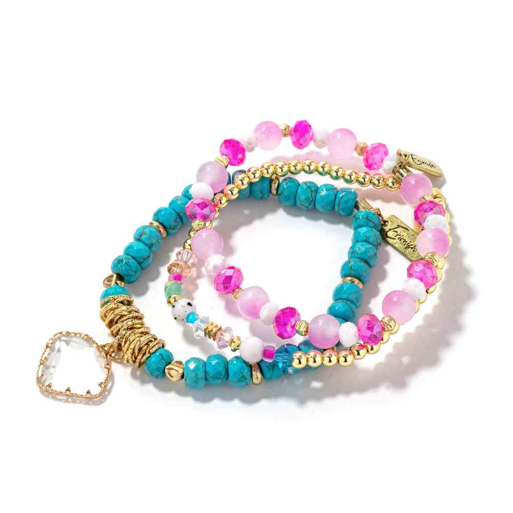 • Circus: A vibrant bracelet stack ideal for the fashionista looking for a unique style. Featuring pink and turquoise hues, this stack can add a touch of sparkle to any look