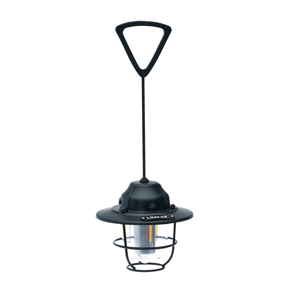A retro-style, rechargeable compact lantern with warm white and bright white options. Four light modes include three static and one that fades slowly between warm and white light. Static light modes include warm white only, white light only, and combined warm and white light.