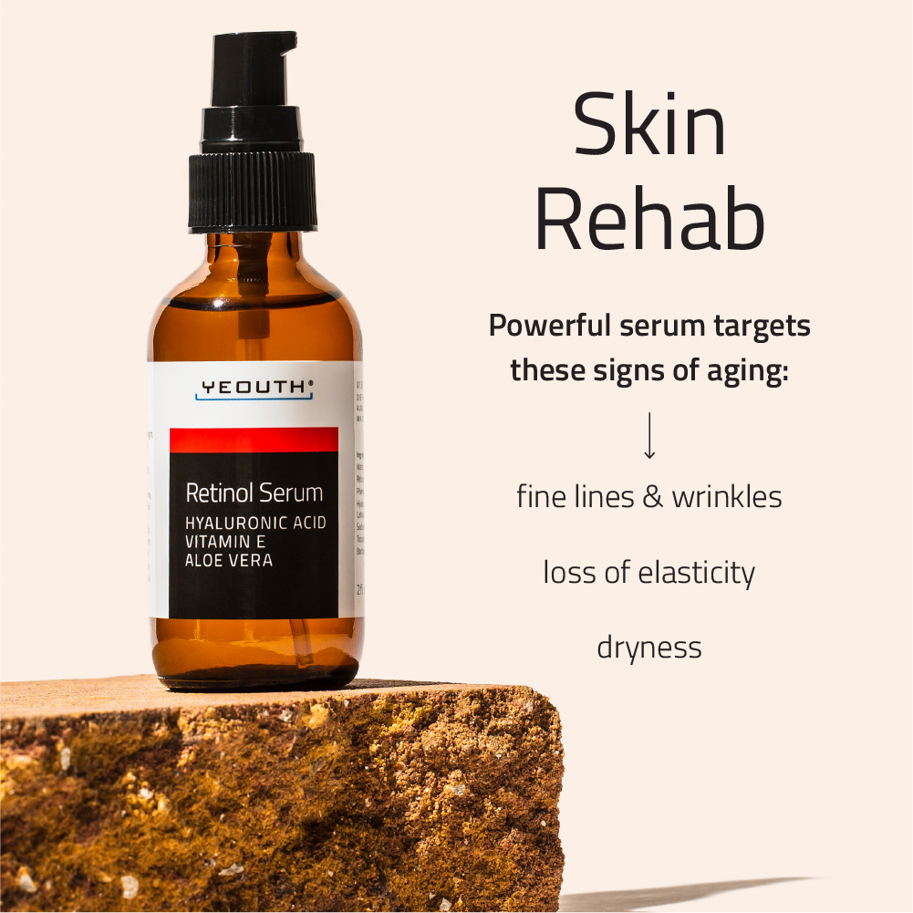• While face is still damp, dab a quarter-sized amount of Retinol Serum onto skin and massage into skin