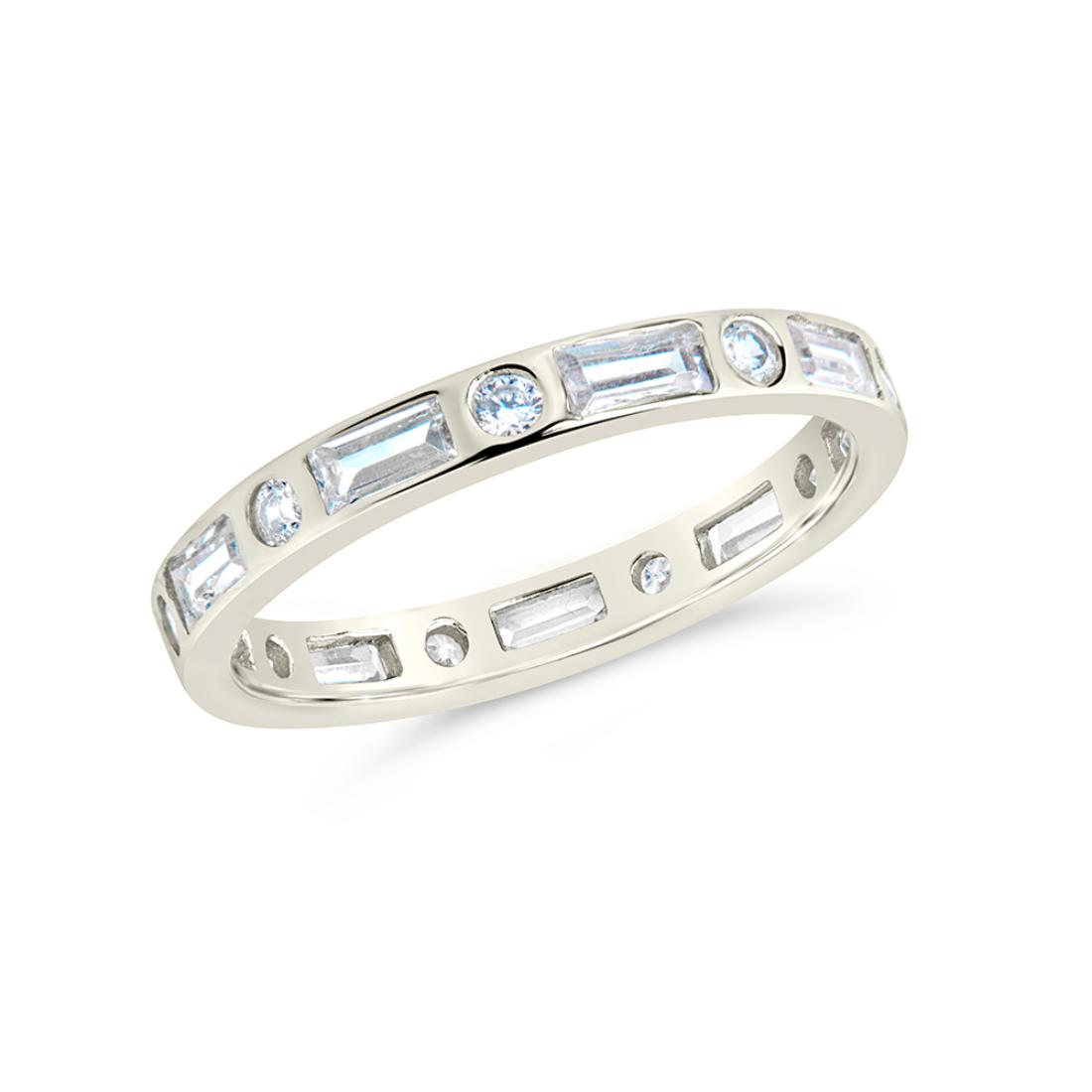 Exude elegance with this timeless Sterling Silver Ethel CZ Ring. Featuring glimmering CZ stones in a classic band design, this is an accessory ideal for any occasion.