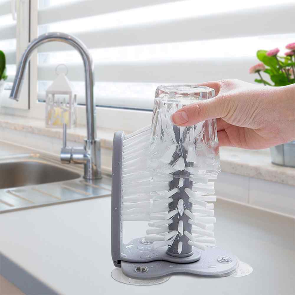 Easily clean bottles, glassware, coffee cups, and more with this handy brush. The flexible bristles have a moderate firmness to ensure stubborn dirt is removed. Suction cups at the bottom of the base can firmly attach to a wall, table, or sink for stability.