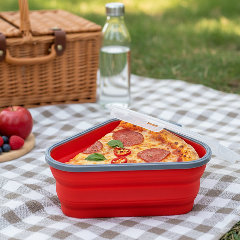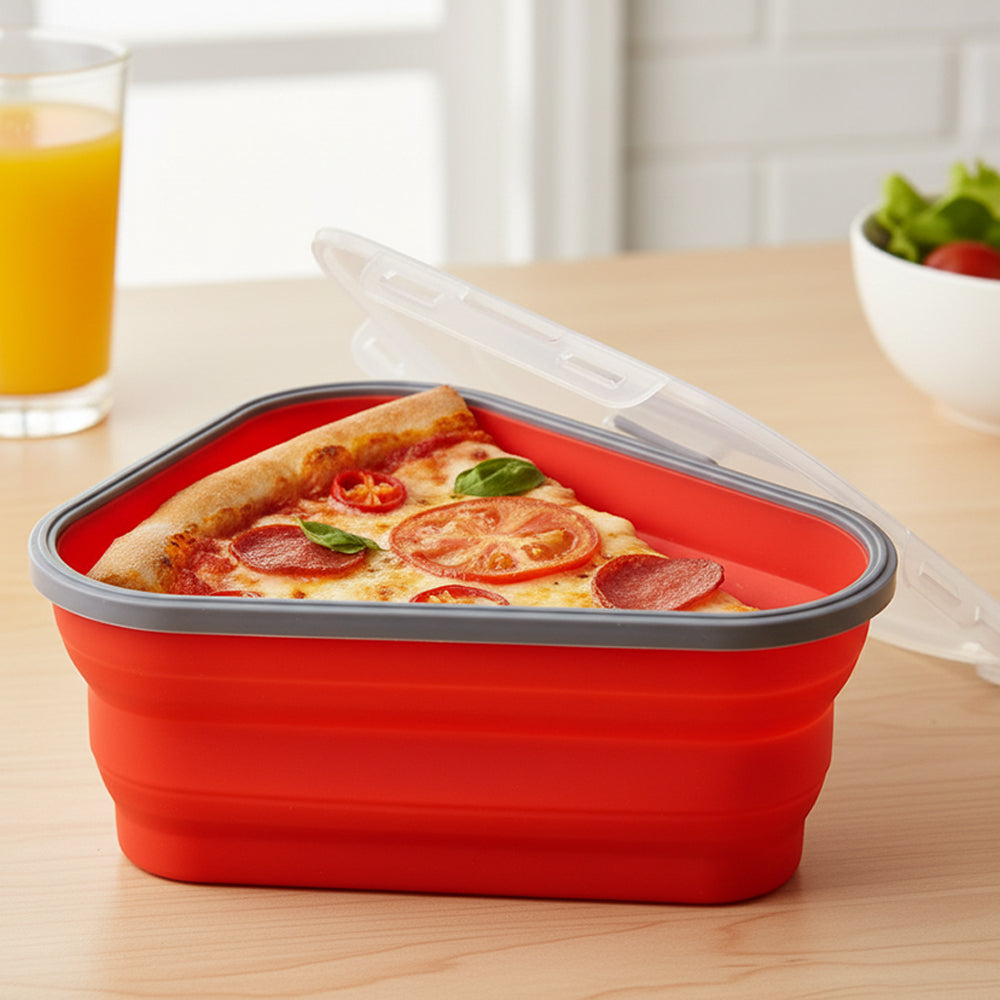 Keep your pizza fresh with a snap-on airtight lid that creates a vacuum seal, ensuring your slices taste better the next day. This collapsible container expands to fit 18” pizza slices and comes with microwavable divider trays that double as pizza plates. Ideal for storing leftover pizza without taking up the whole shelf, this container even features an optional air vent to reduce condensation.