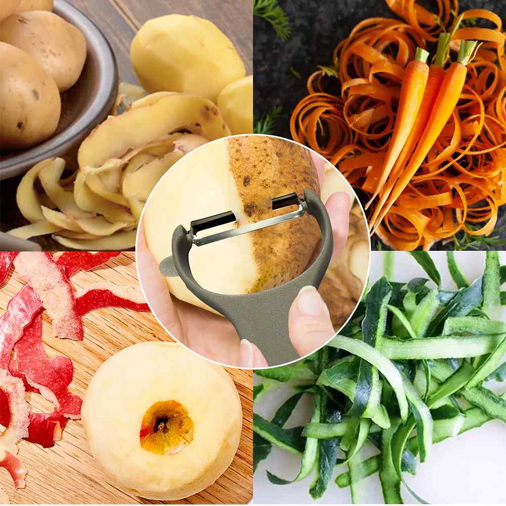 Peel a wide variety of fruits and vegetables with minimum fuss. These vegetable peelers have razor-sharp stainless steel blades that easily remove the skins from potatoes, apples, cucumbers, and more.