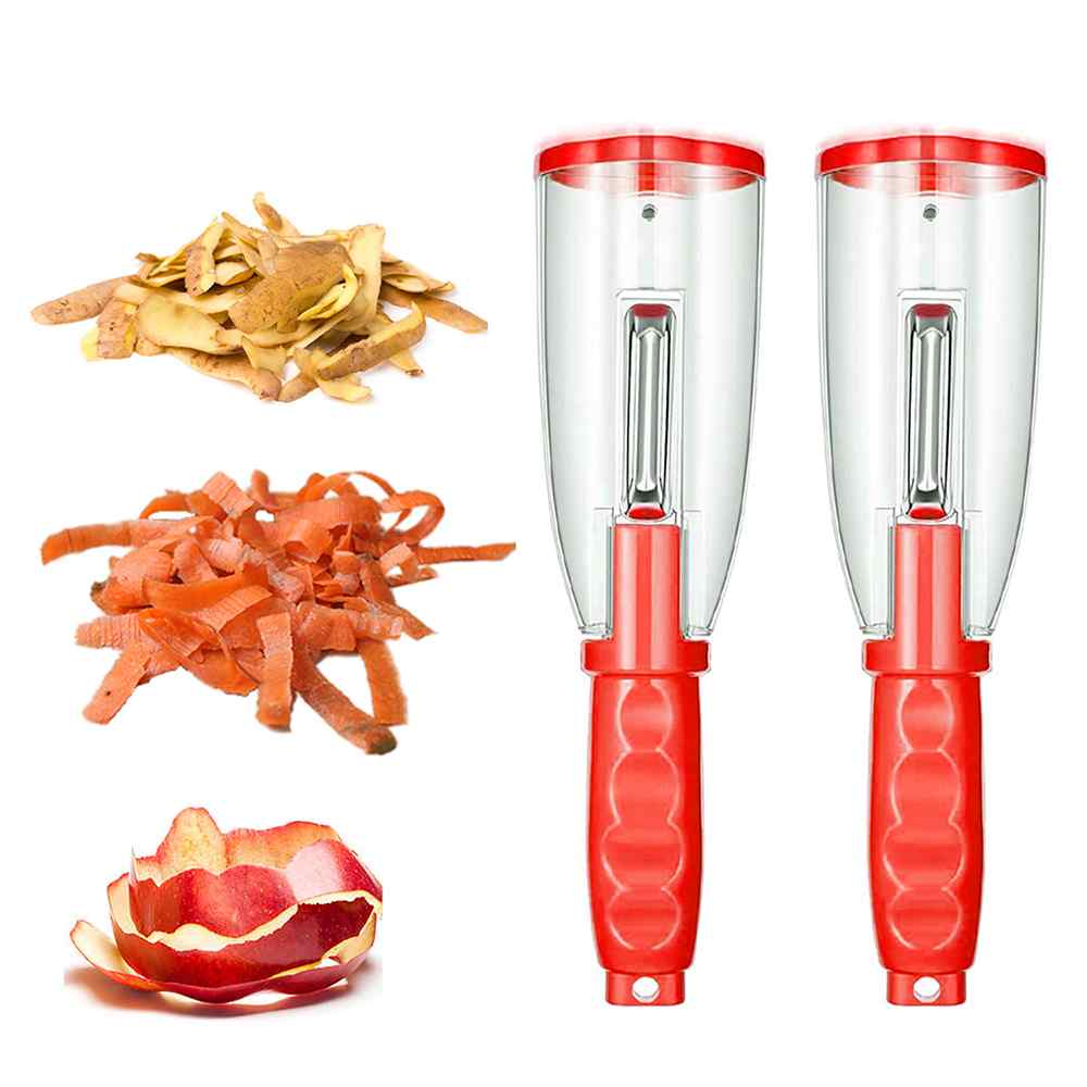 Peel a wide variety of fruits and vegetables with minimum fuss. This vegetable peeler has a stainless steel blade that easily removes the skins from potatoes, apples, cucumbers, and more. A storage box is attached, so you can keep your kitchen clean!