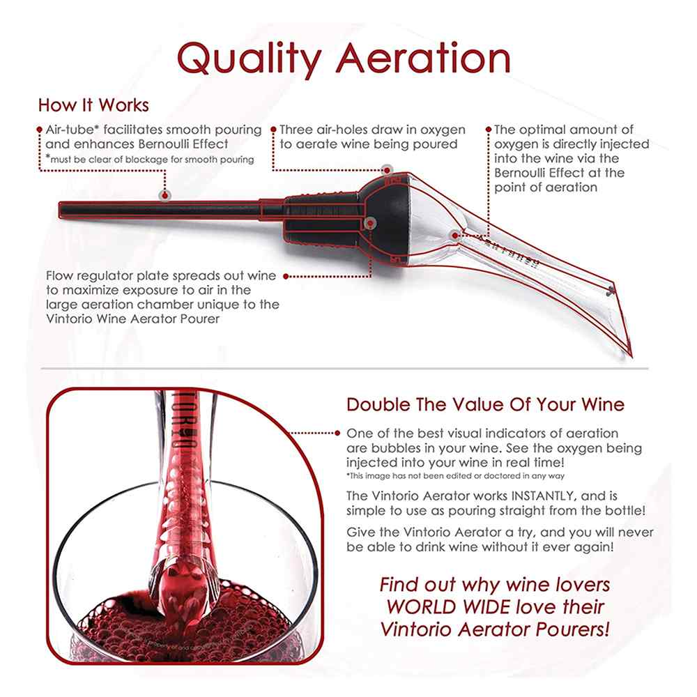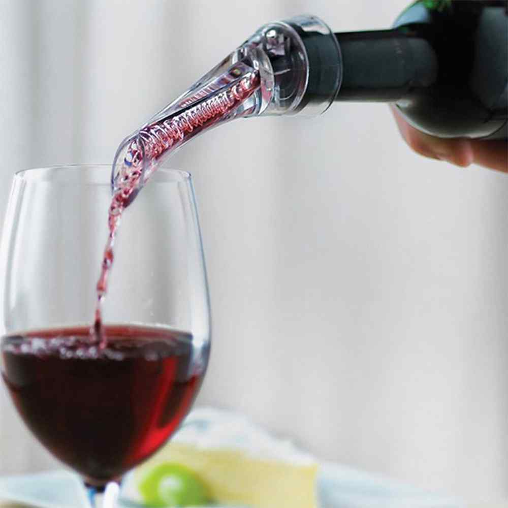 Simply uncork a bottle of wine, insert the wine aerator, and pour yourself a glass in seconds
