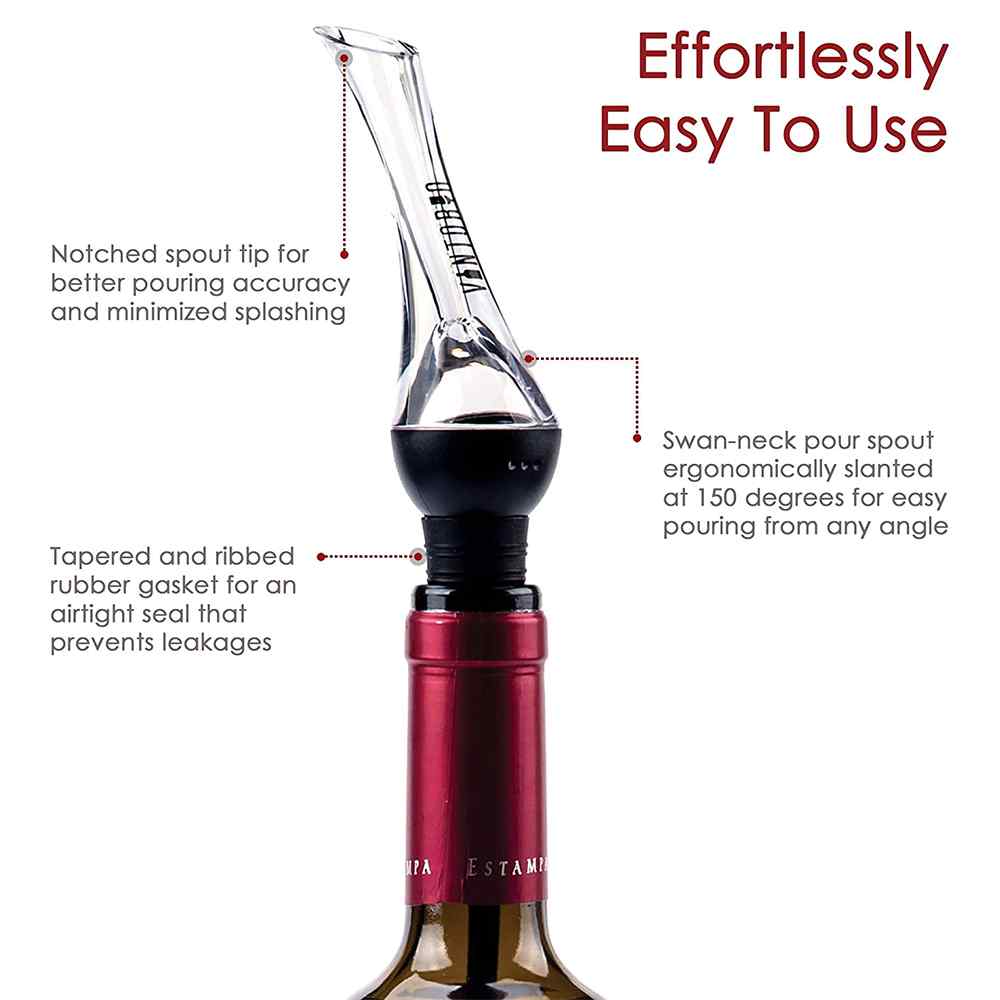 This versatile wine aerator helps enhance the quality and flavor of your red wine as it flows from the bottle. Pour your wine, oil, or any liquid with elegance and precision. This aerator adds timeless style to your home bar or table along with long-term durability.
