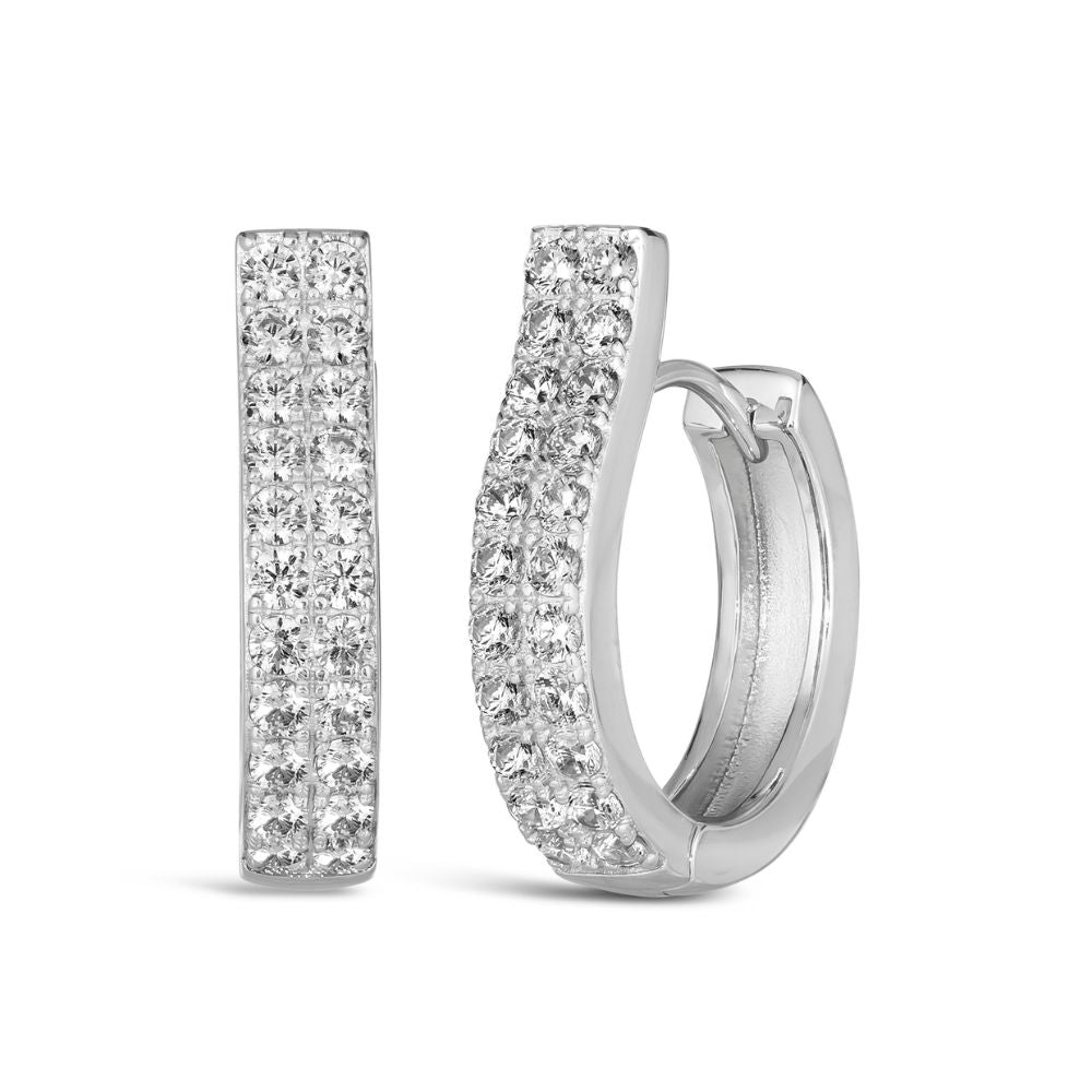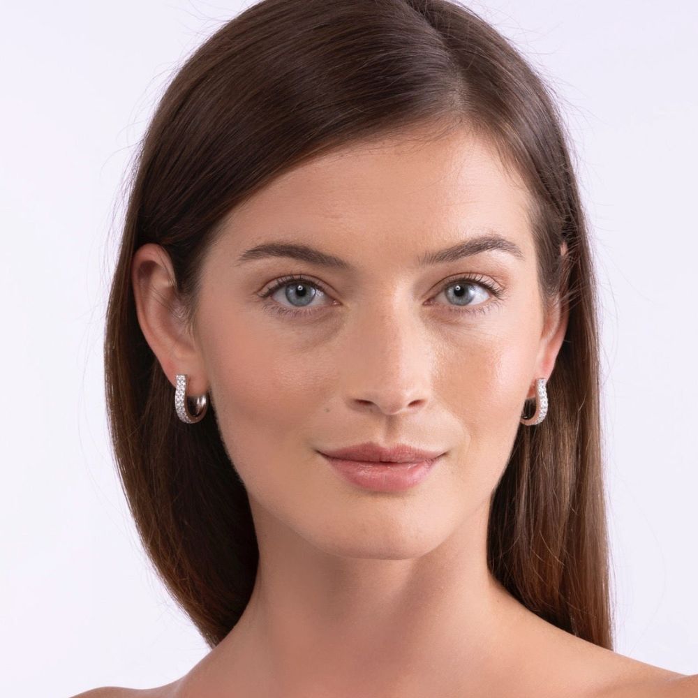 Sleek, sparkling, and endlessly versatile, the Lola Modern Hoop Earrings are the ideal blend of everyday elegance and contemporary style. Crafted with a smooth curve and set with two rows of brilliant diamond crystalline, these hoops catch the light with every turn. Lightweight yet radiant, they transition seamlessly from day to night, adding just the right amount of glamour to any look.