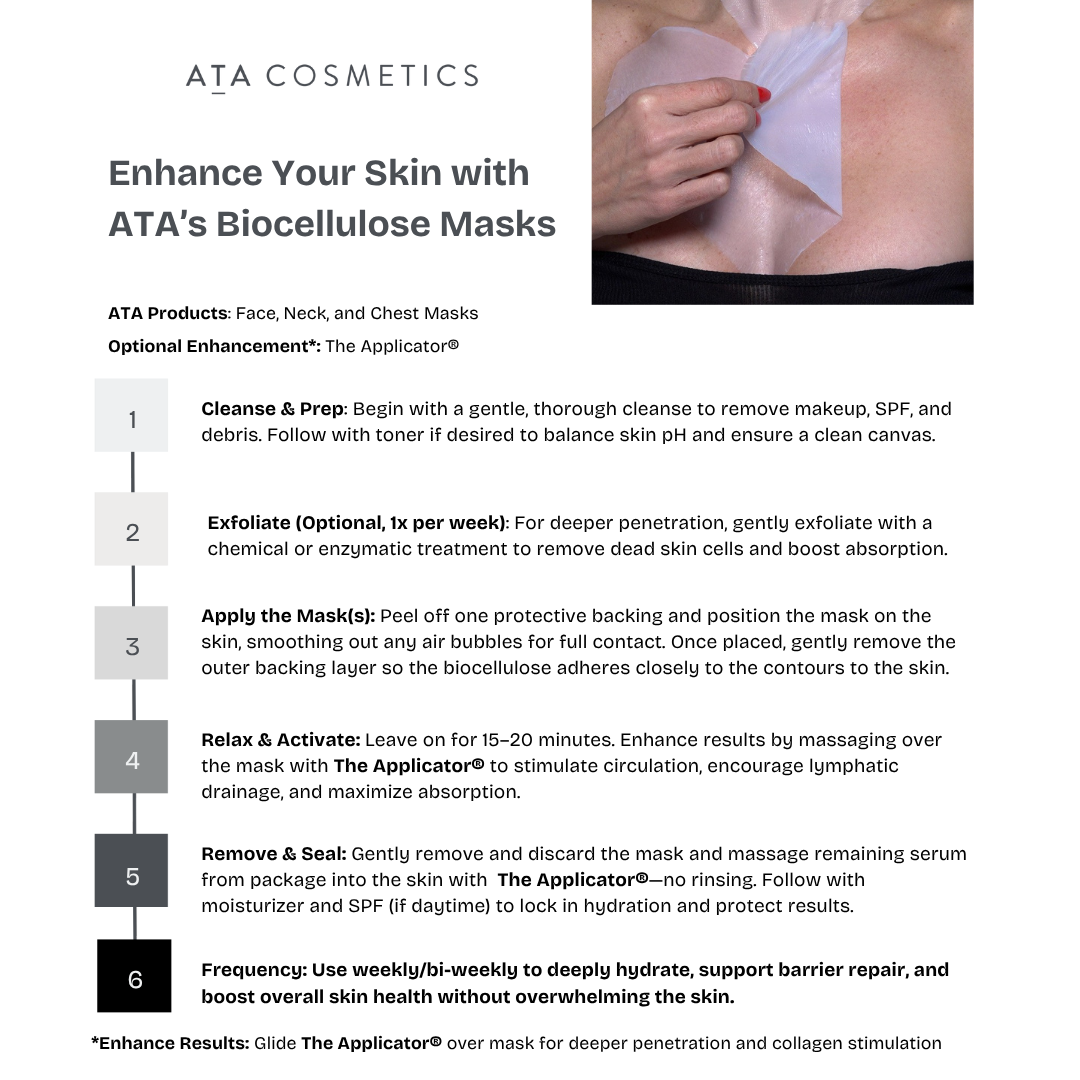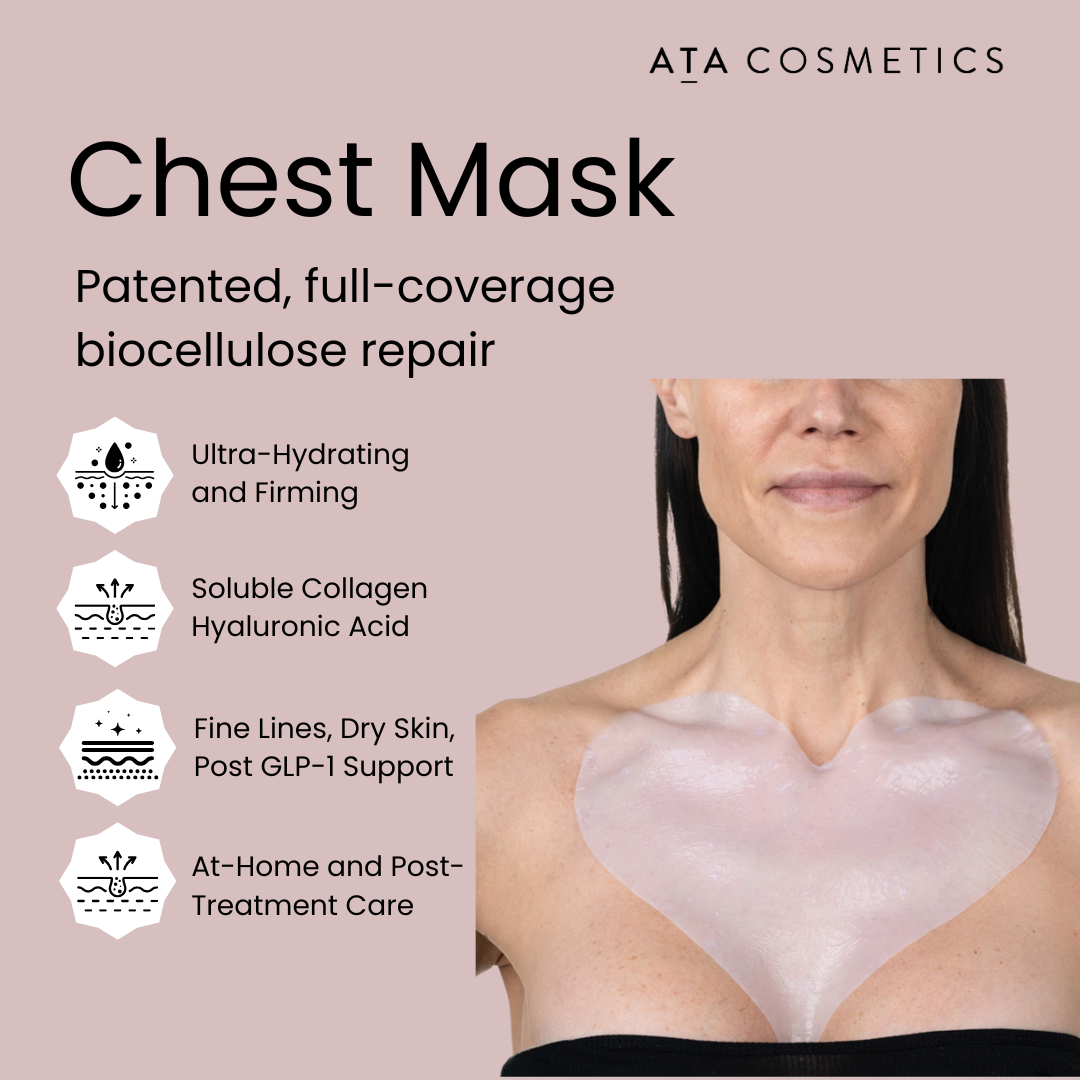 Don’t let your chest give your age away. This patented biocellulose chest mask delivers deeper penetration and firming where standard masks can’t. Engineered to seamlessly contour to your décolletage, it helps infuse deep hydration and nourishment right where your skin needs it most—so you can step into the year feeling renewed, radiant, and confidently refreshed.