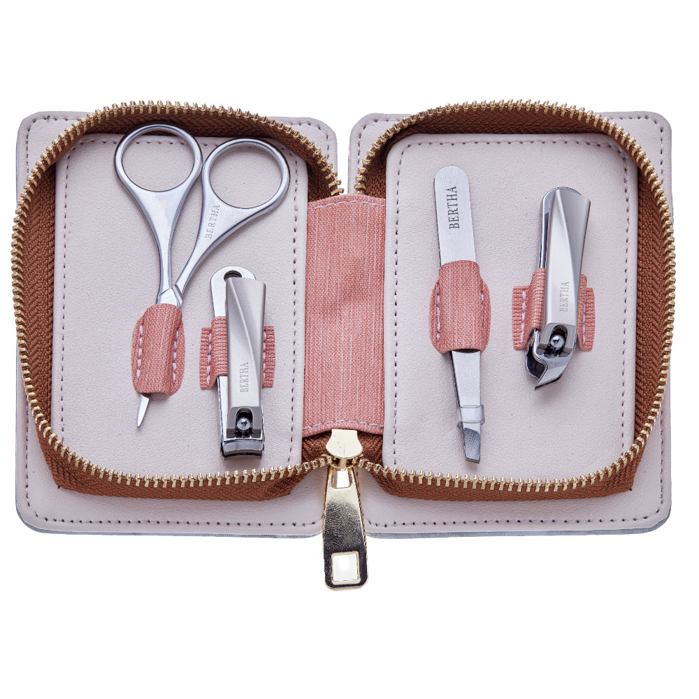 You’ll always have the basics handy with this kit containing four durable surgical stainless steel grooming tools. Held in a stylish, sturdy genuine leather case, it’s ideal for everyday use and travel.