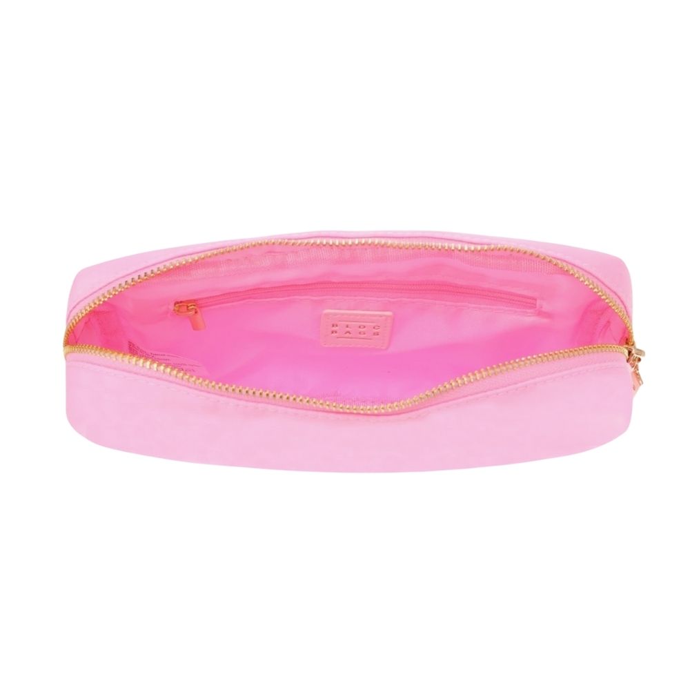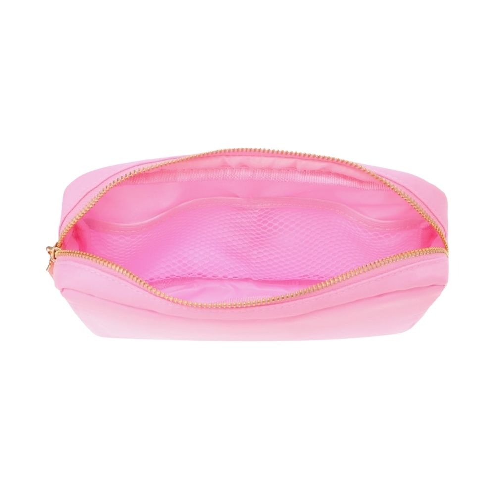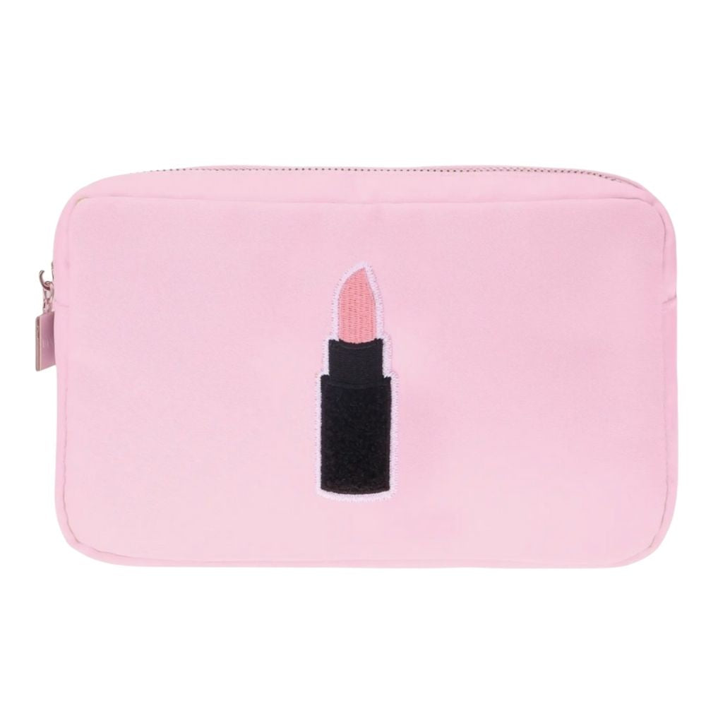 A chenille lipstick appliqué and gleaming hardware refine this nylon-canvas cosmetic bag with a trio of interior pockets to keep essentials organized. This bag helps keep cosmetics and skincare essentials lovingly secured when at home and on the go.