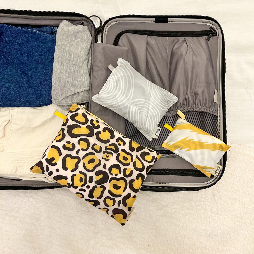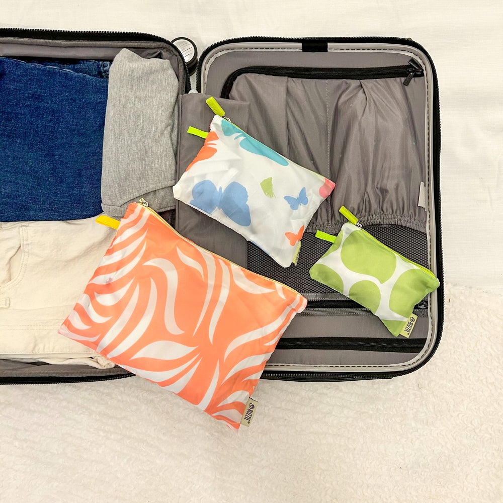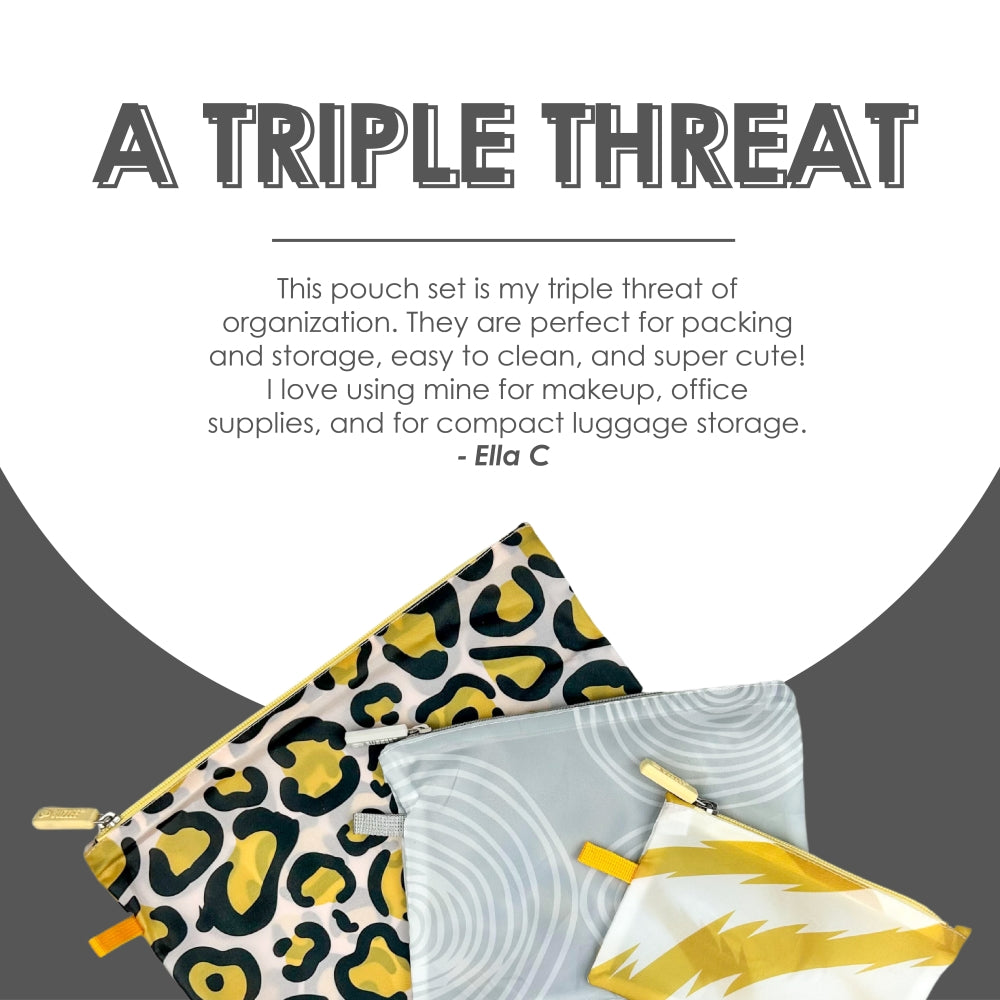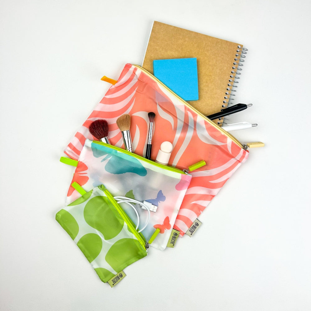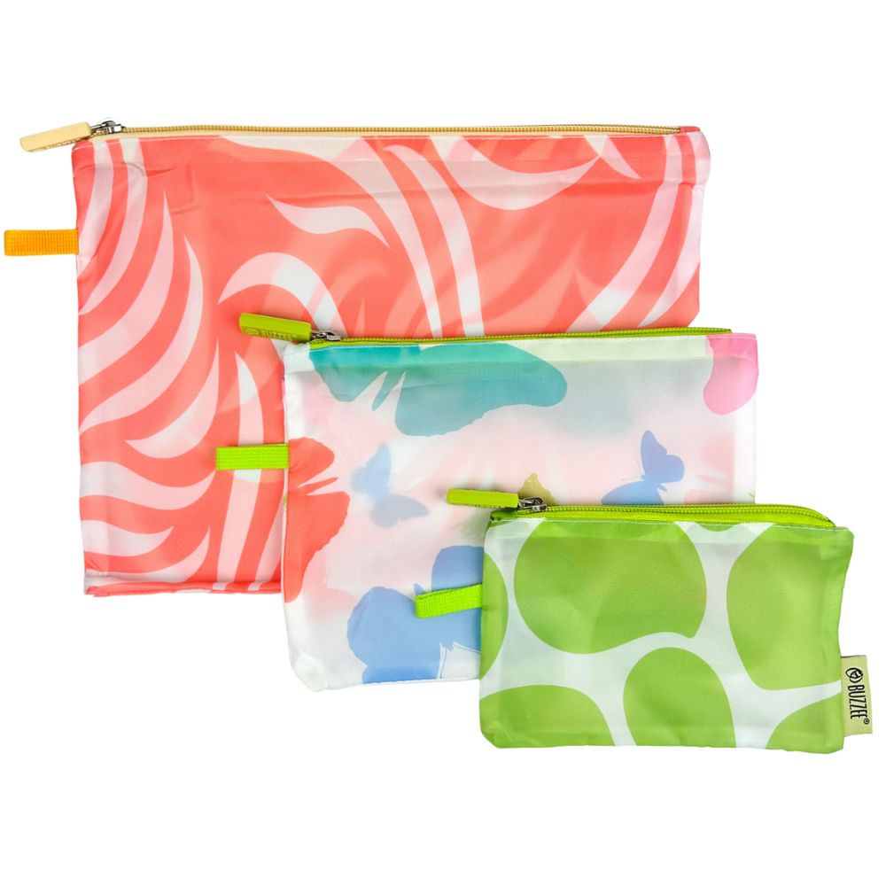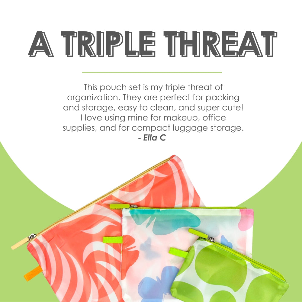 Store and travel in style! This pouch set is ideal for storing and packing everyday essentials for travel and home. Made from durable yet lightweight polyester, these zipper pouches are great for everyday shopping, luggage packing, household storage, and more.