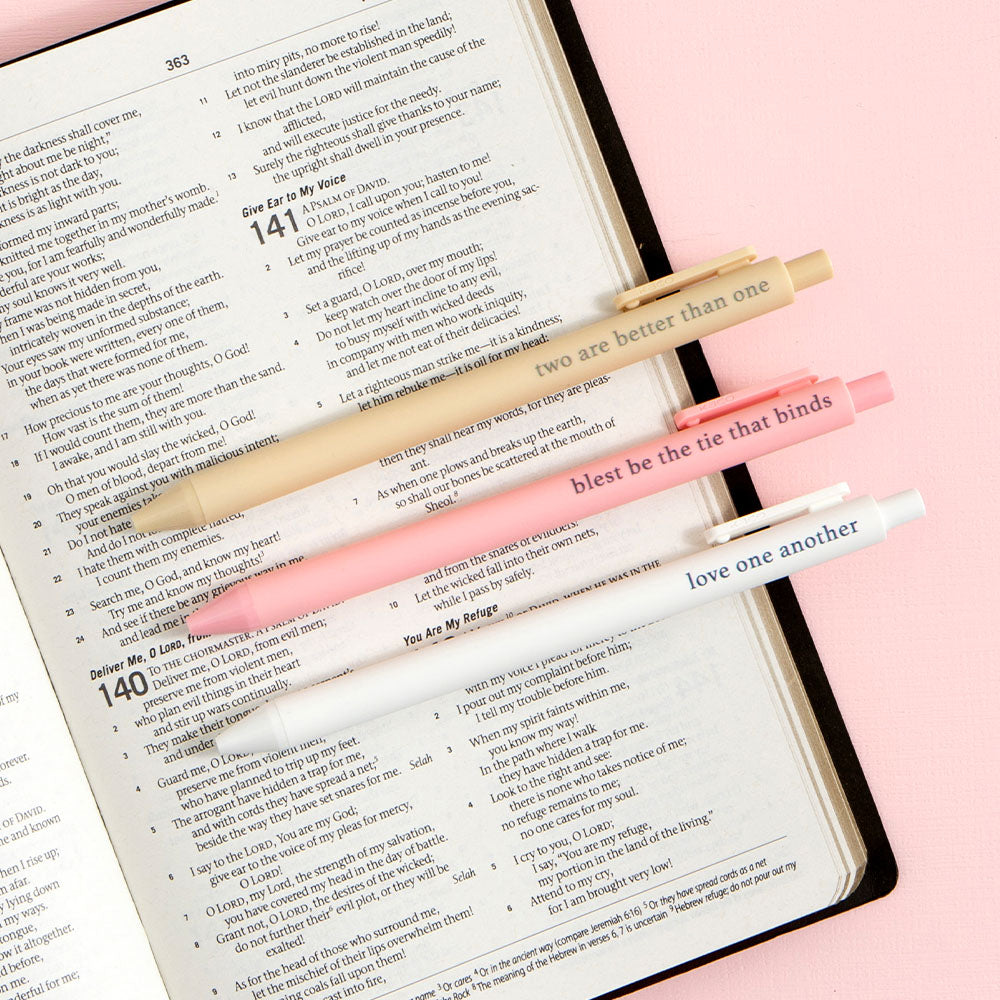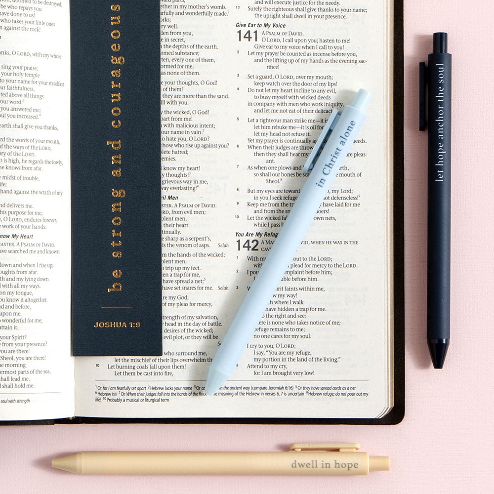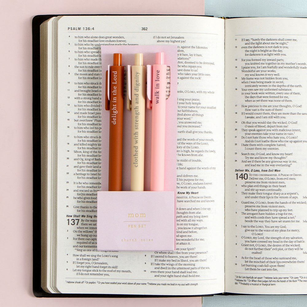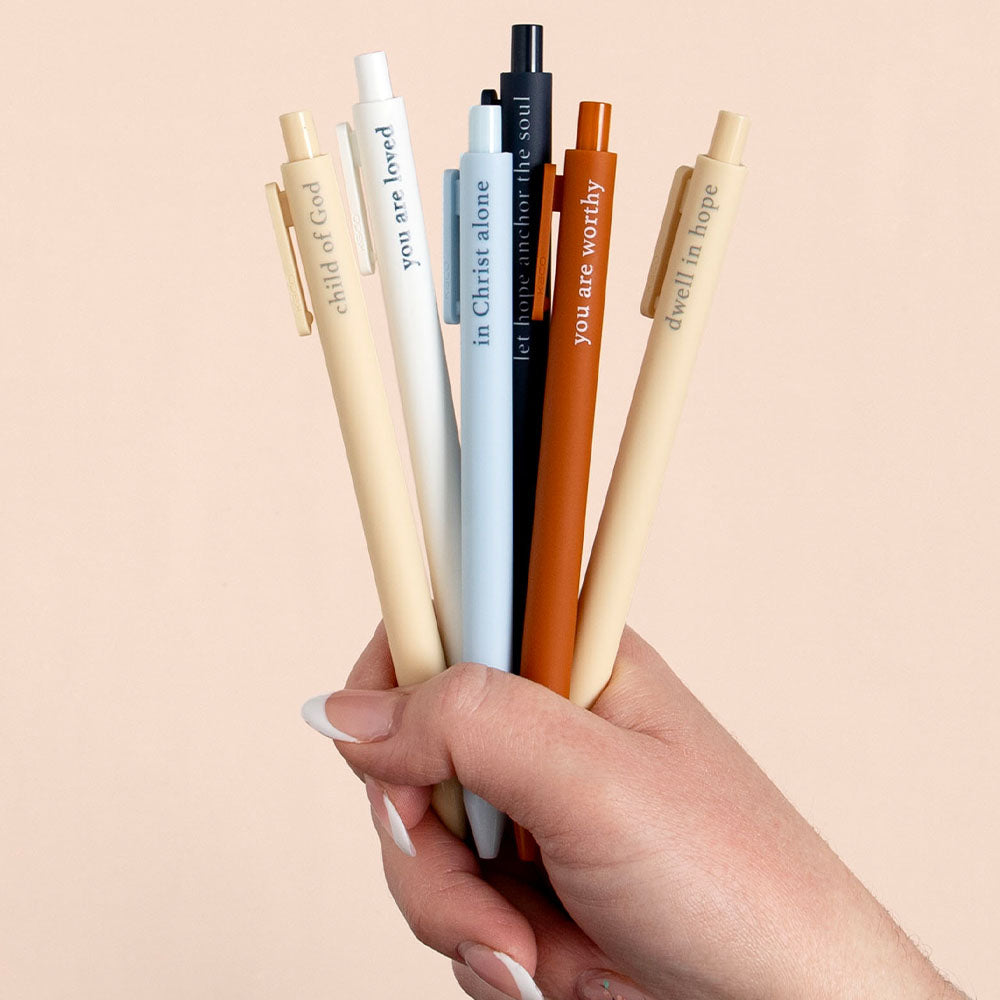 Ideal for Bible study, journaling, or quiet time notes, the Pen Set is both purposeful and inspiring. Each smooth-writing pen features a Scripture-based phrase to keep your heart centered on truth. Ink for each pen matches the barrel color. Whether you’re a student of Scripture or gifting to one, these pens make a thoughtful addition to any faith-filled stationery collection. Ideal for teens, college students, or anyone deepening their walk with God.