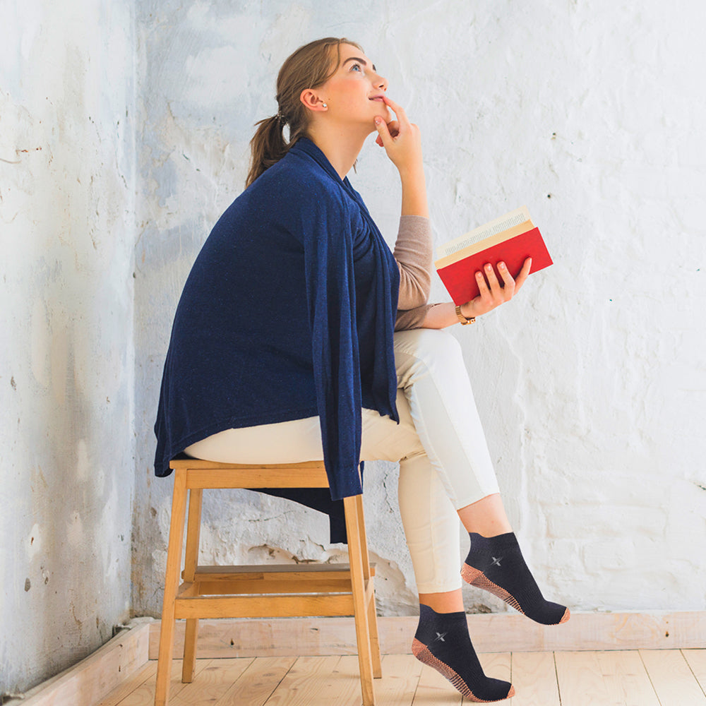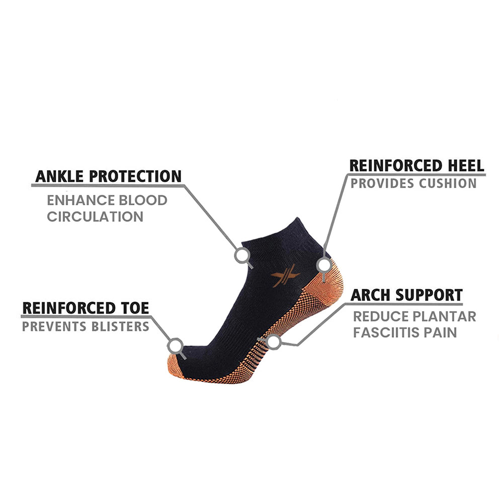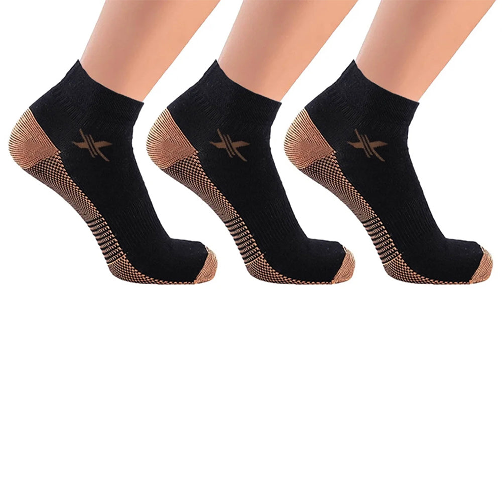 These ankle-length compression socks are the ideal companion for active lifestyles or everyday wear. Infused with copper to help draw blood flow to the feet during exercise, these socks work to reduce swelling and fatigue. They also offer antimicrobial properties, helping ensure a comfortable, rejuvenating experience for your feet.