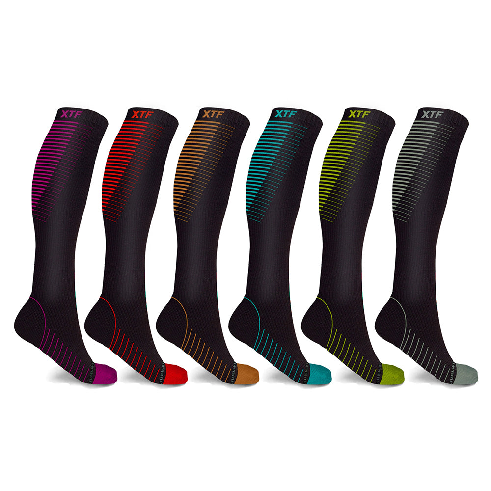 • Six (6) pairs of Copper-Infused Everyday Wear Recovery Knee-High Compression Socks in six (6) colors: