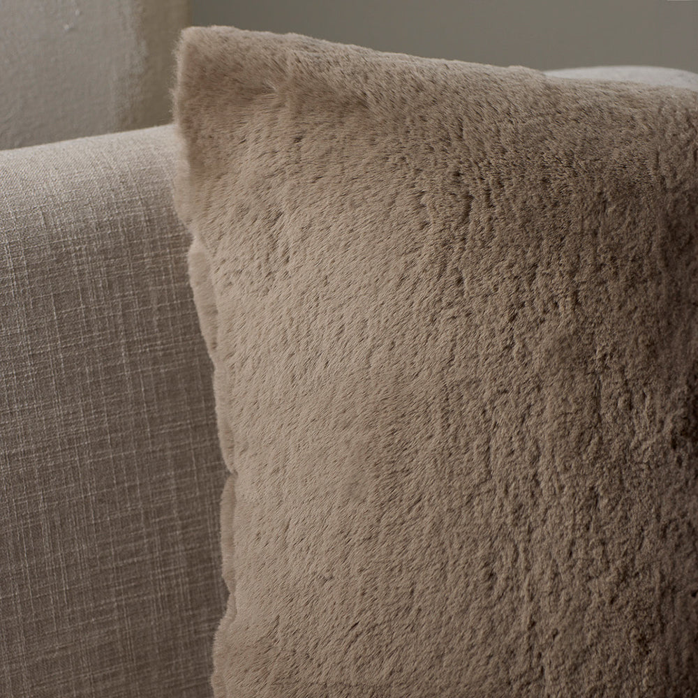 Crafted for those who love a touch of luxury, the Cuddle Pillow features an ultra-plush pile that’s irresistibly soft. Its faux-fur-like texture and knife-edge finish on both sides add a layer of sophistication, making it the ideal addition to your space. Prop it on your sofa, favorite chair, or your bed with its cozy yet refined look.