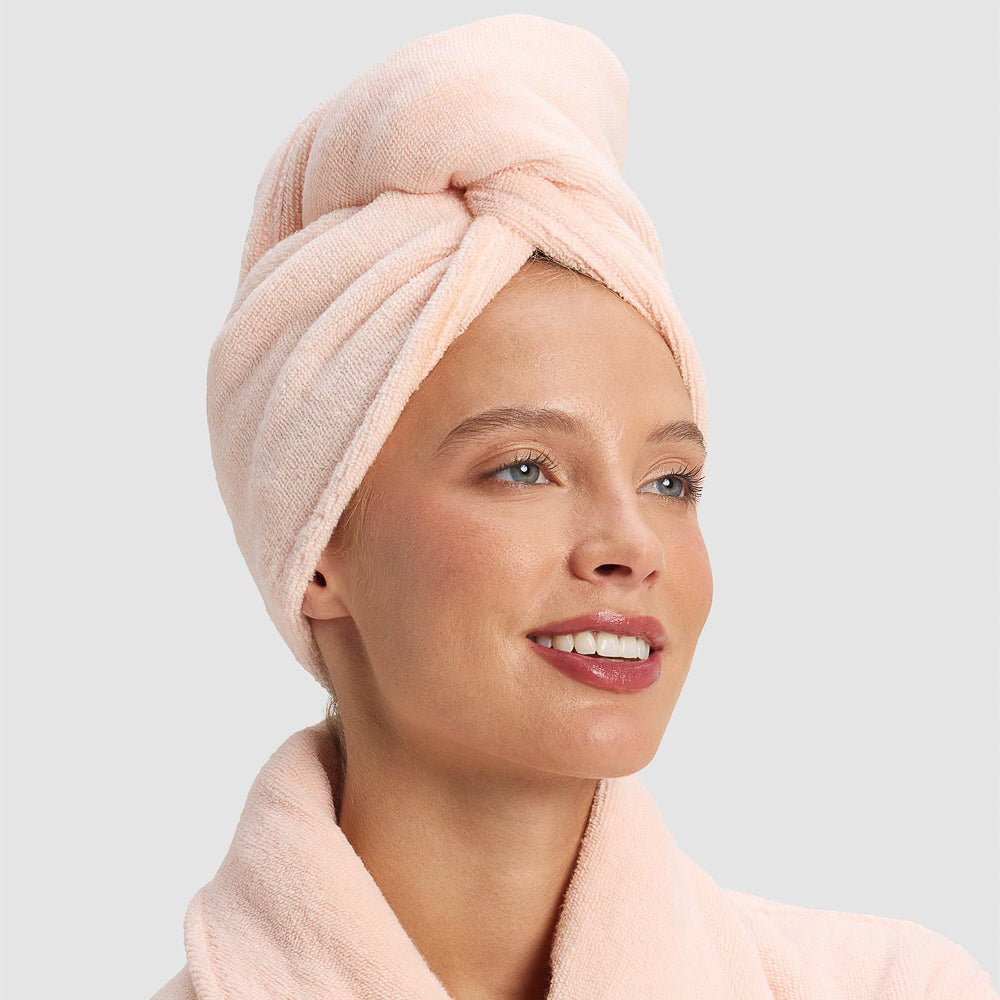 Transform your haircare routine with the Luxe Hair Towel, designed with superior quality. Crafted from a blend of cotton and bamboo viscose using revolutionary Zero Twist technology, this towel gently absorbs excess moisture while keeping your hair in place.